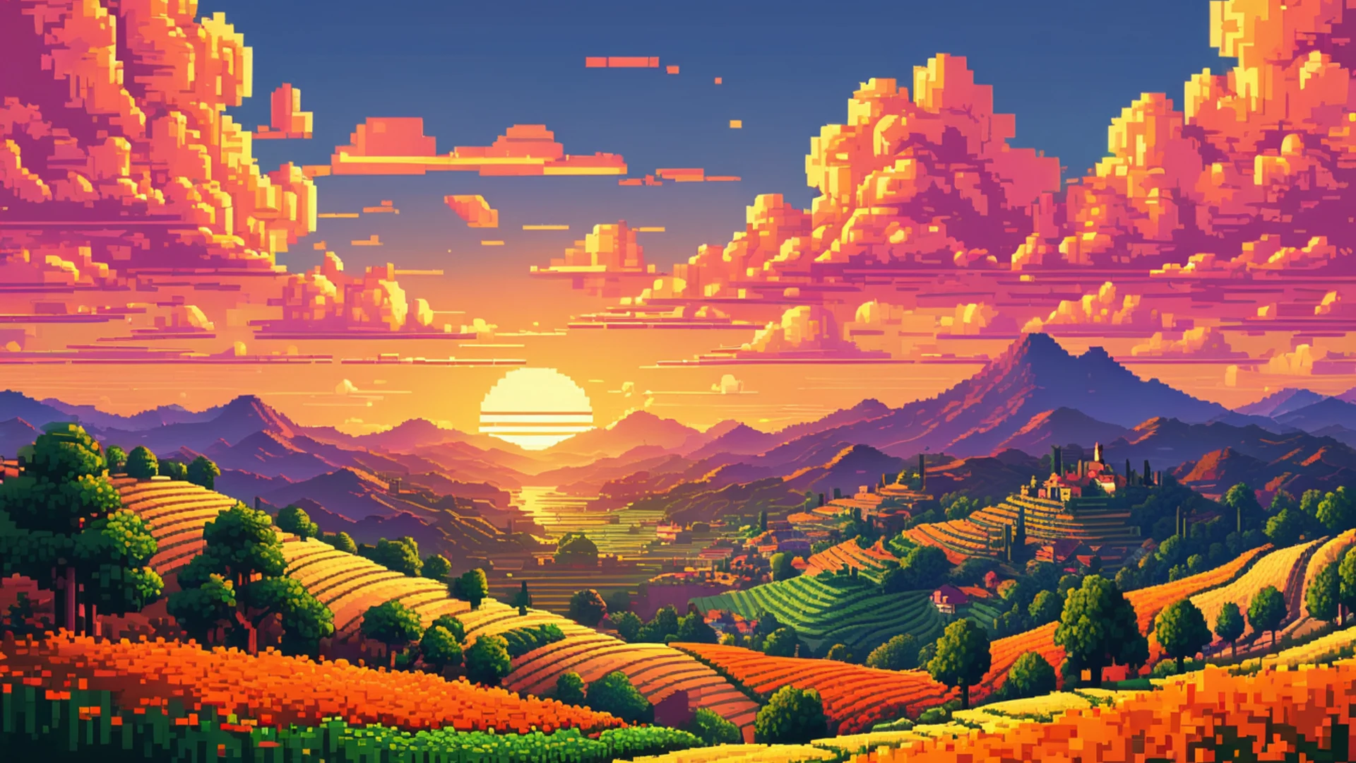 Get this stunning Pixel Art Sunset wallpaper in tablet quality. 1920x1080 gaming wallpaper available for free download.