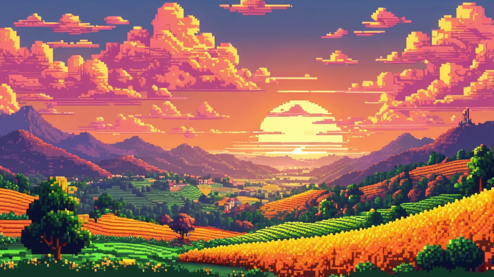 Free Pixel Art Sunset wallpaper in tablet resolution (1920x1080). Beautiful gaming background for your screen. No signup required.