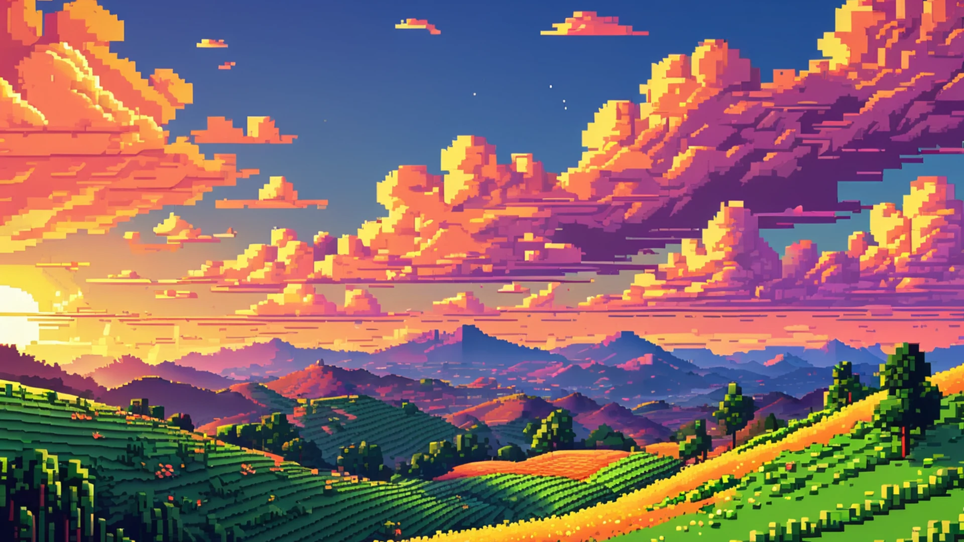 Download Pixel Art Sunset wallpaper for free. 1920x1080 tablet resolution, perfect for your desktop. High quality gaming wallpaper.
