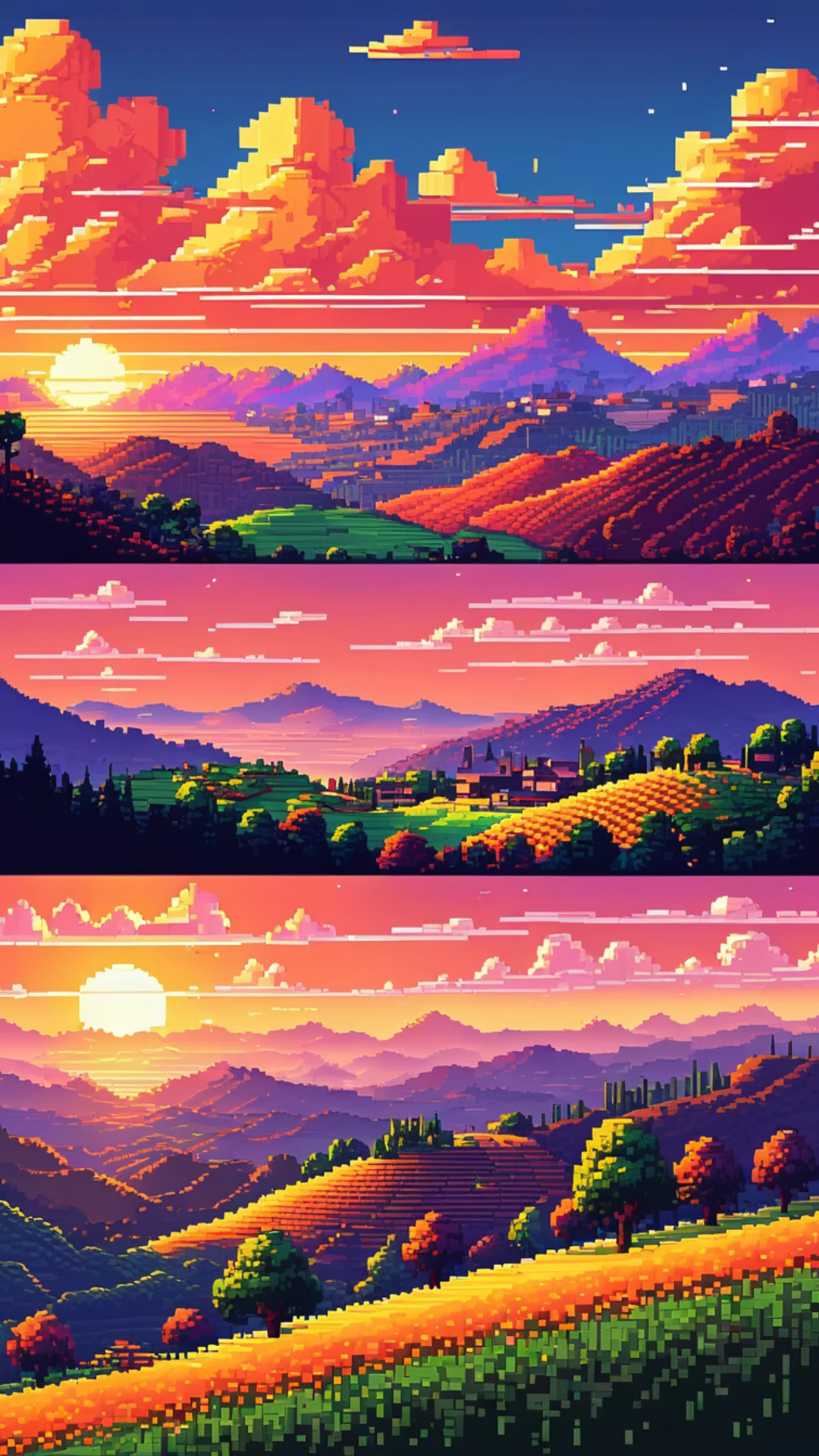 Free Pixel Art Sunset wallpaper in phone resolution (1080x1920). Beautiful gaming background for your screen. No signup required.