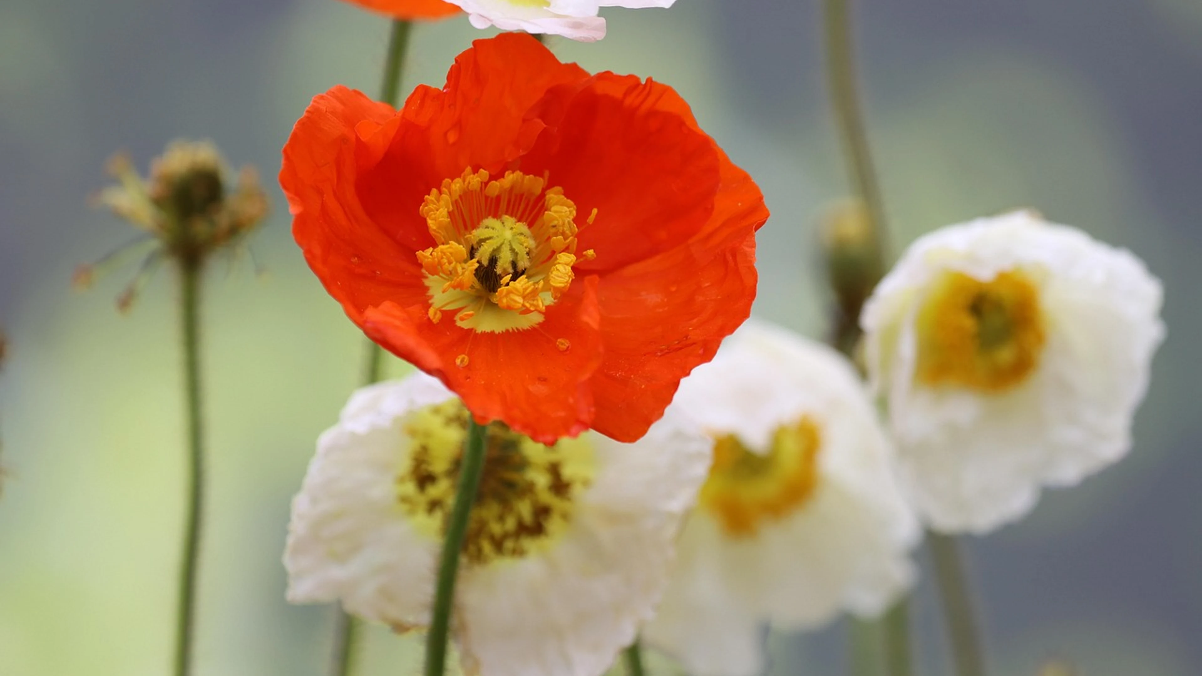 Download Poppy sage color meadow wallpaper for free. 3840x2160 4K Ultra HD resolution, perfect for your desktop. High quality flowers wallpaper.
