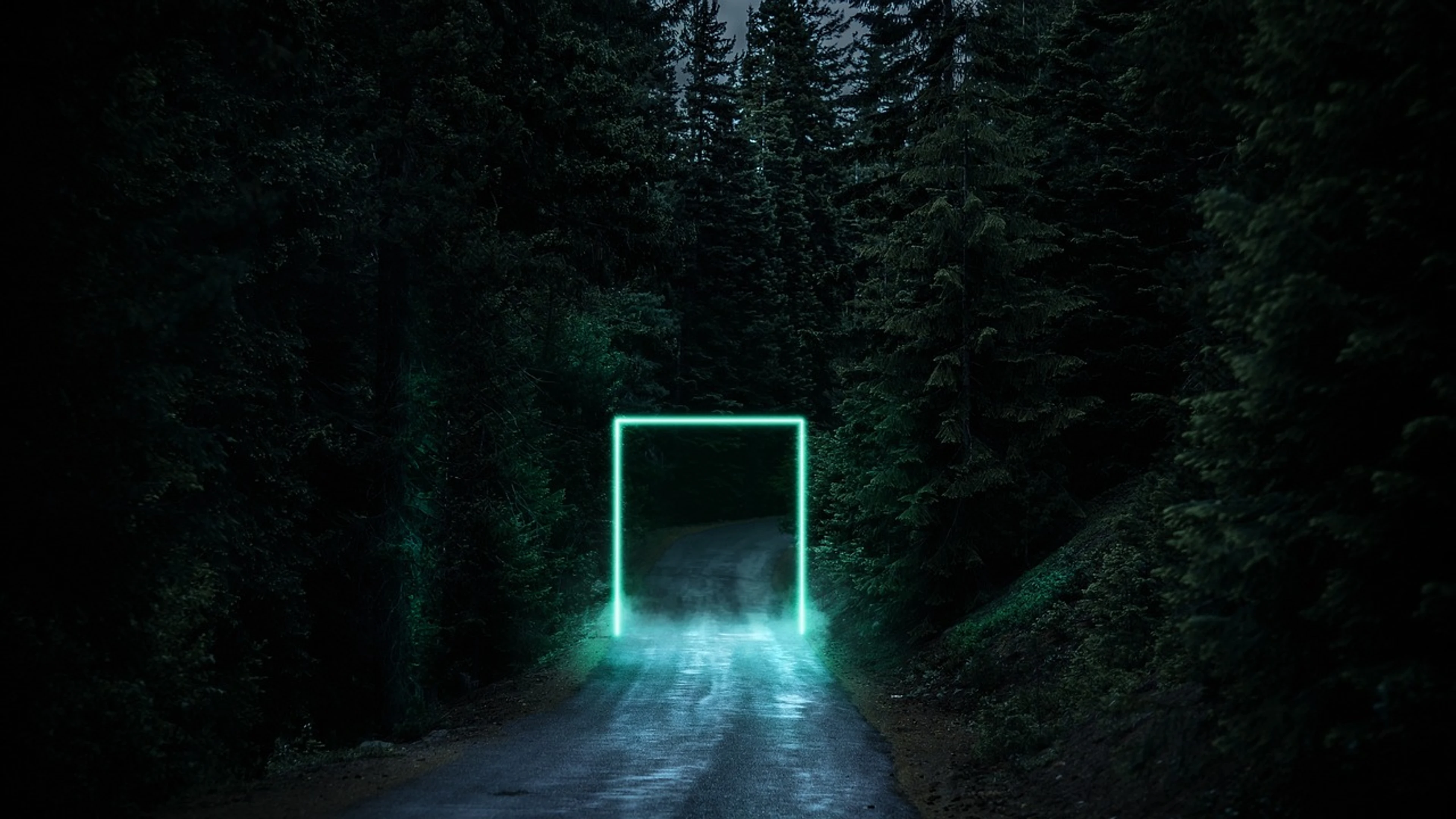 Portal forest night - free 4K Ultra HD neon wallpaper for desktop
