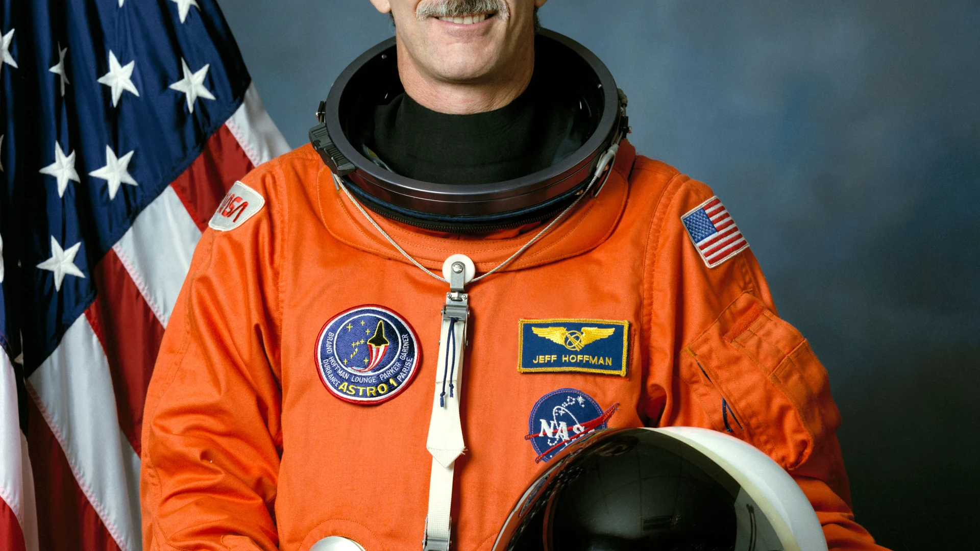Download Portrait of Astronaut Jeffrey A. Hoffman wallpaper for free. 1920x1080 tablet resolution, perfect for your desktop. High quality space wallpaper.