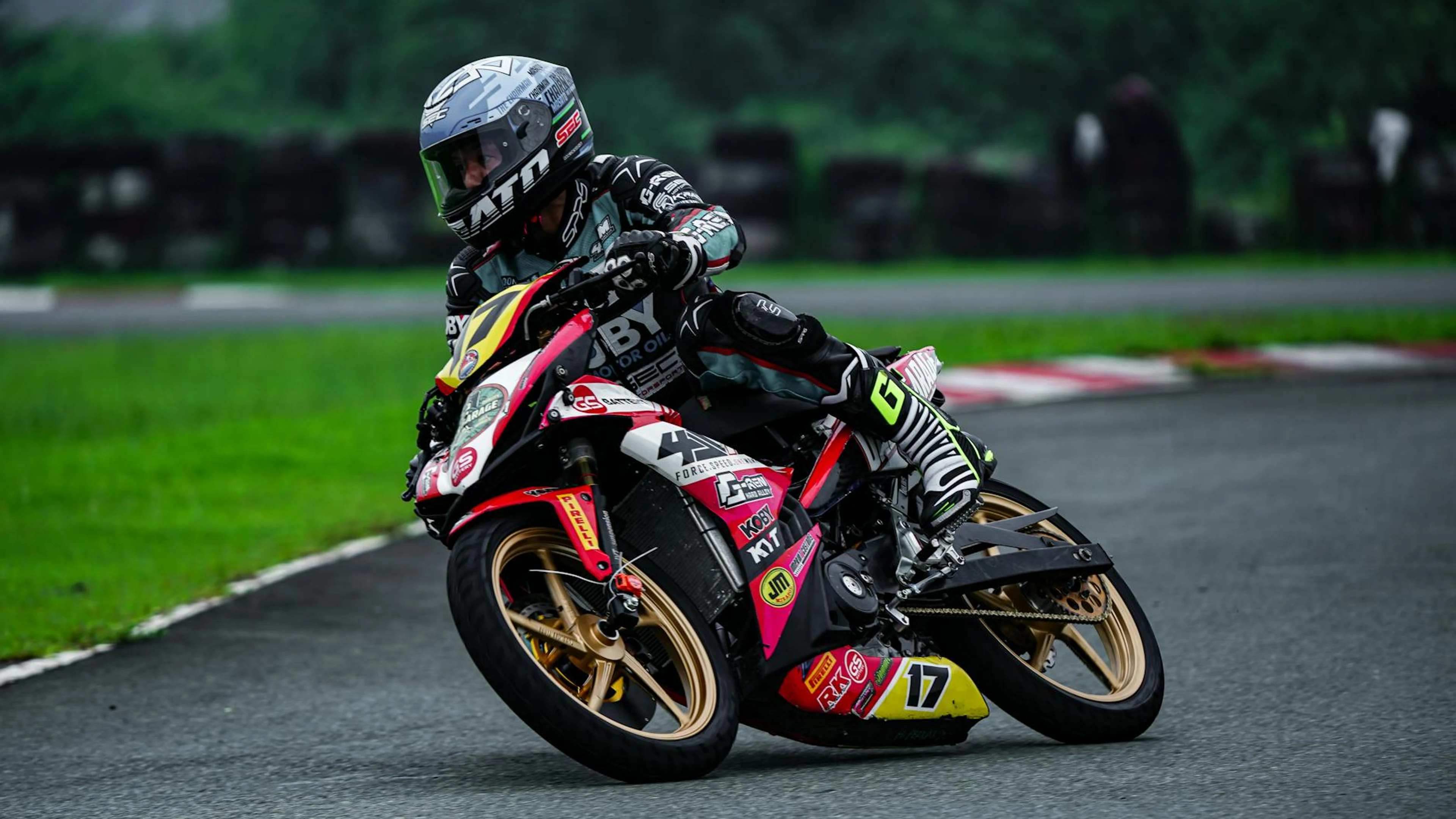 Professional motorcycle racer on a track in Tarlac City, showing dynamic speed a