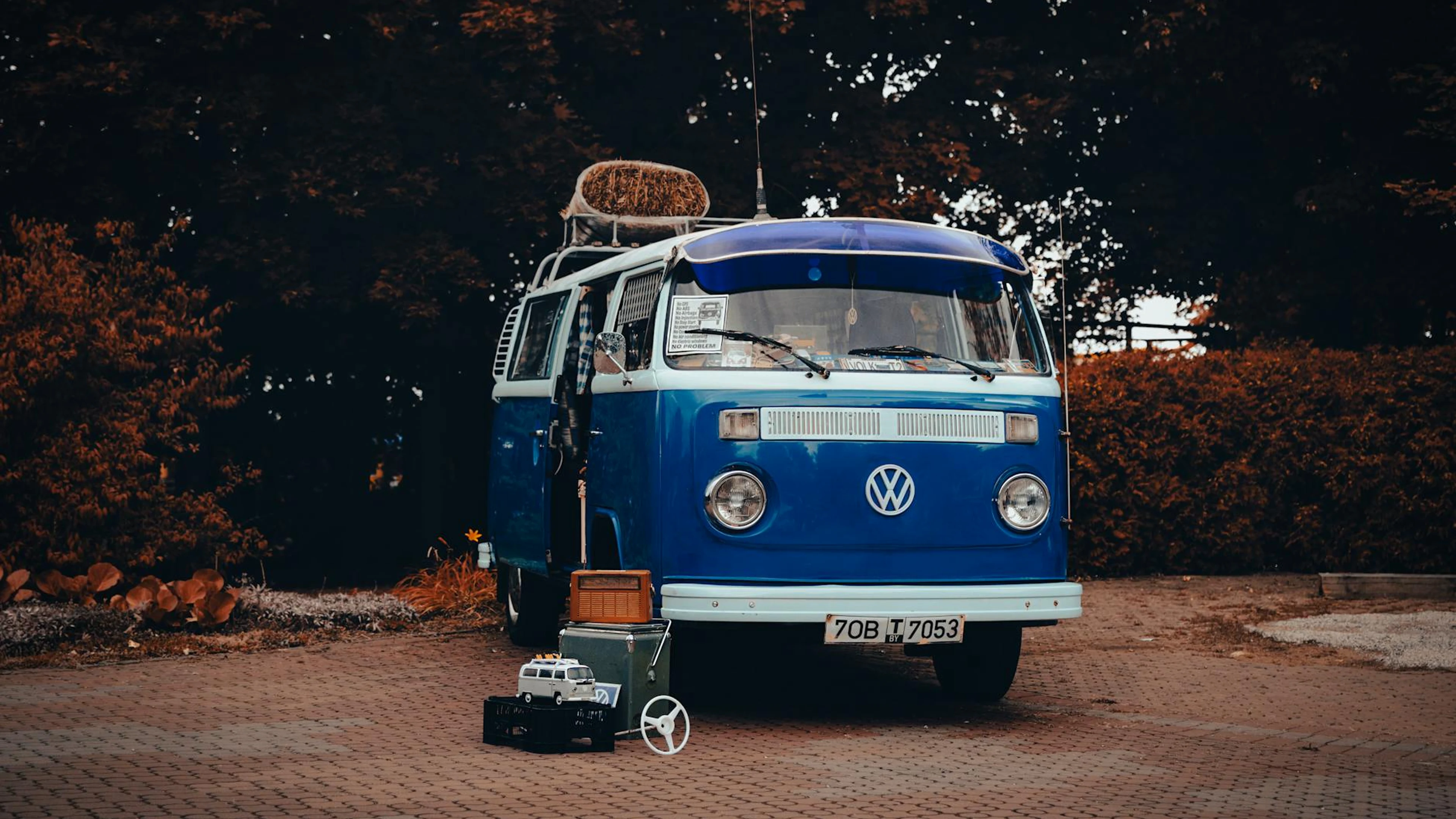 Get this stunning Retro blue Volkswagen van parked outdoors, showcasing classic design and travel wallpaper in 4K Ultra HD quality. 3840x2160 cars wallpaper available for free download.