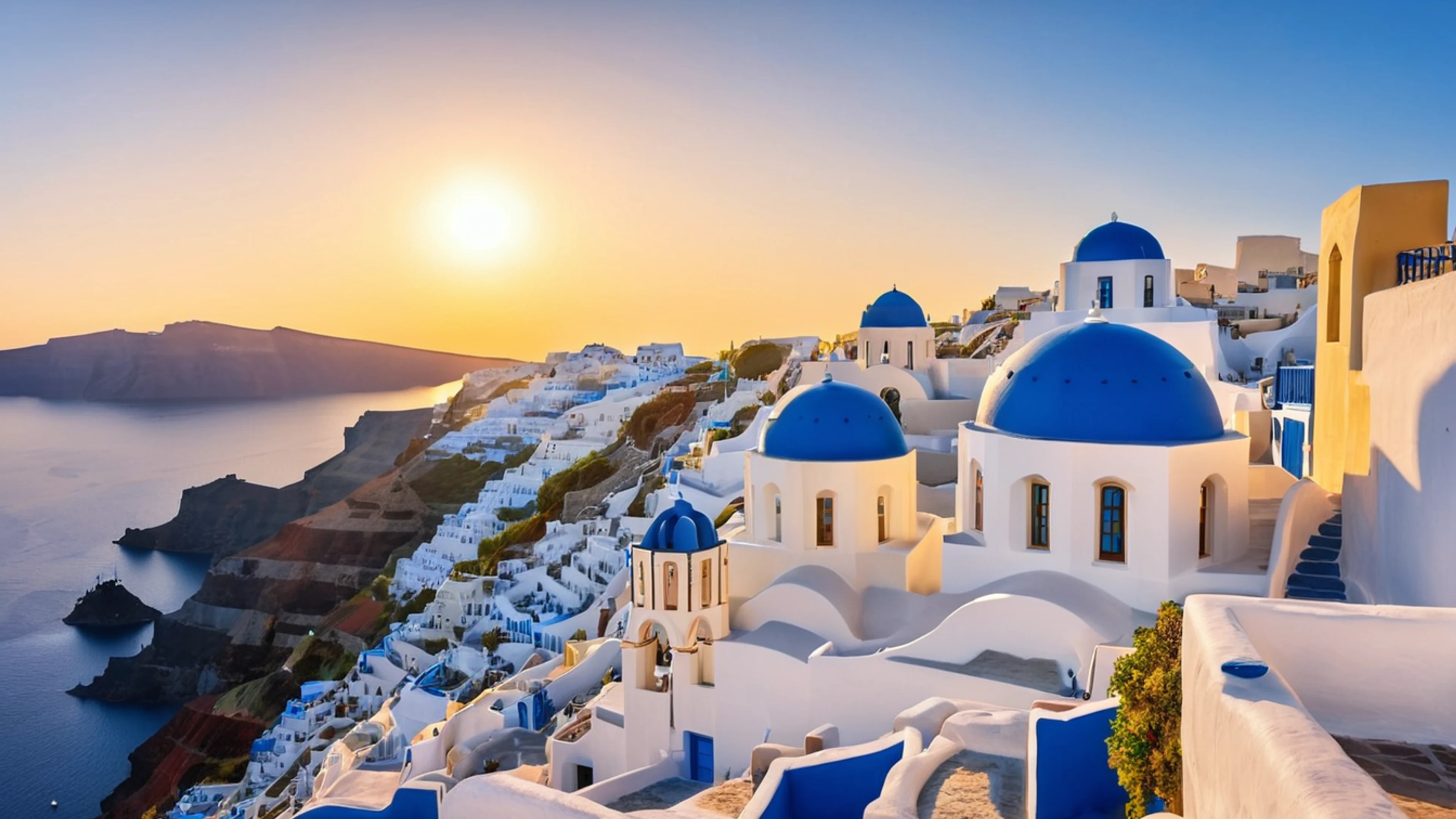 Download Santorini Sunset Greece wallpaper for free. 3840x2160 4K Ultra HD resolution, perfect for your desktop. High quality sunset wallpaper.