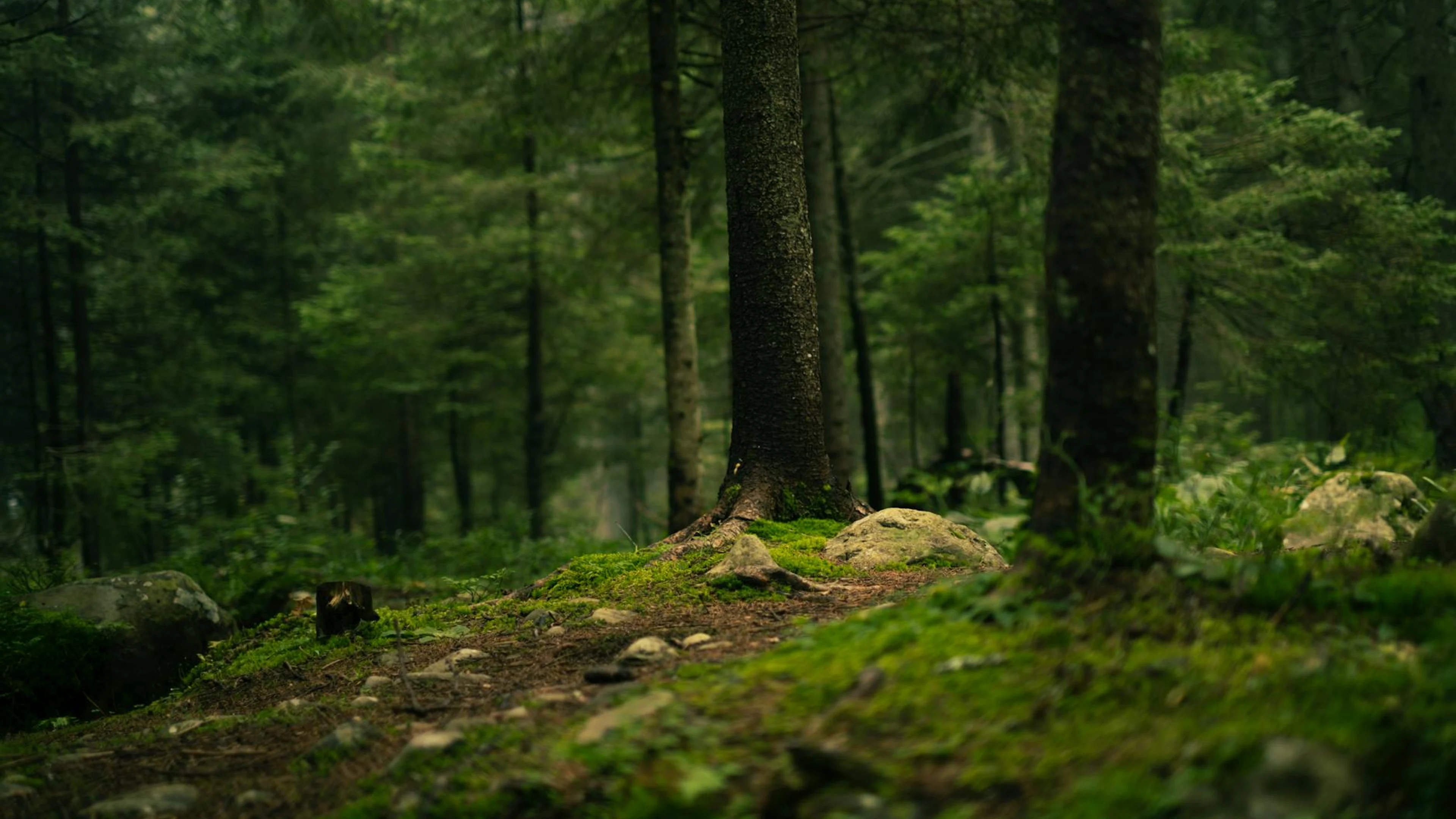 Serene forest path surrounded by lush greenery and mist, ideal for nature explor