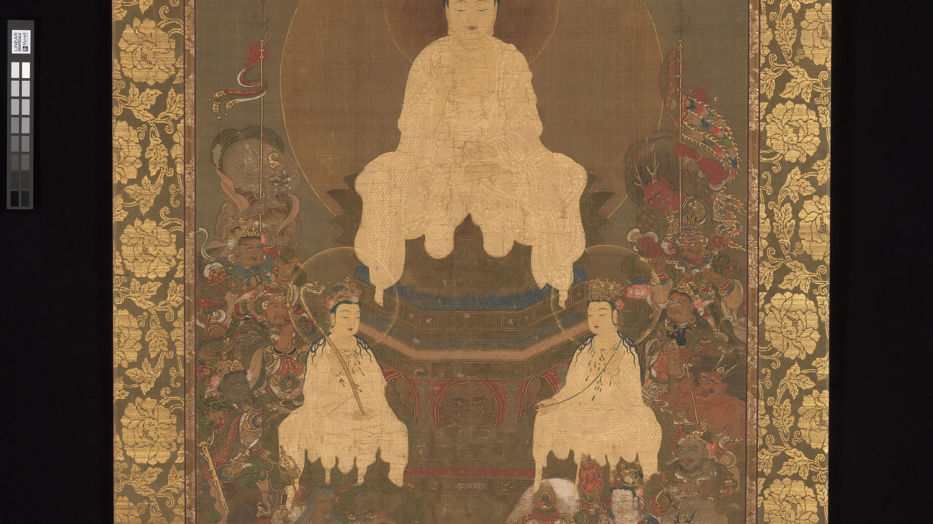 Free Shaka (Shakyamuni), the Historical Buddha, with Two Attendant Bodhisattvas and S wallpaper in tablet resolution (1920x1080). Beautiful aesthetic background for your screen. No signup required.