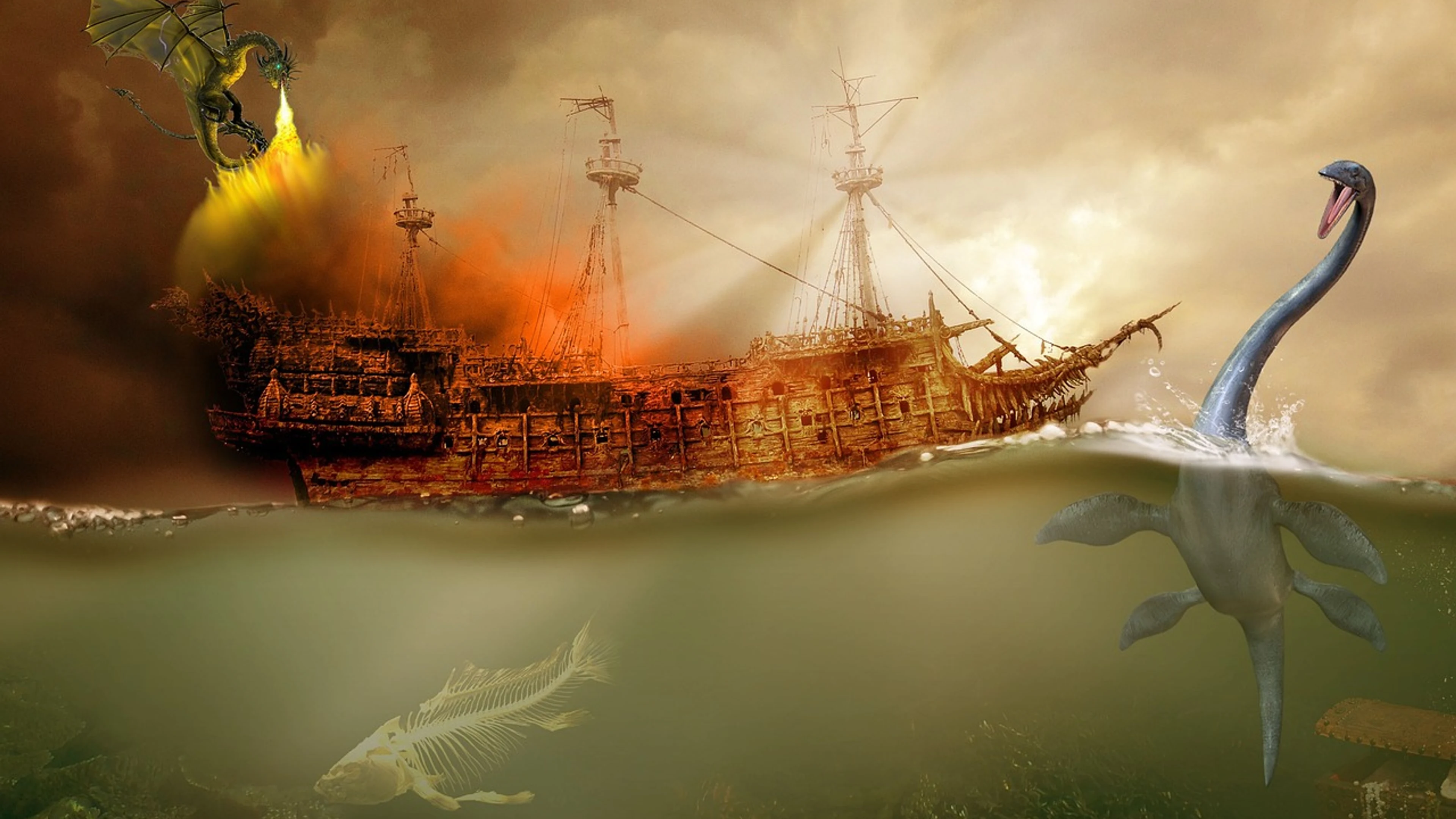 Ship sea dragon - free 4K Ultra HD fantasy wallpaper for desktop
