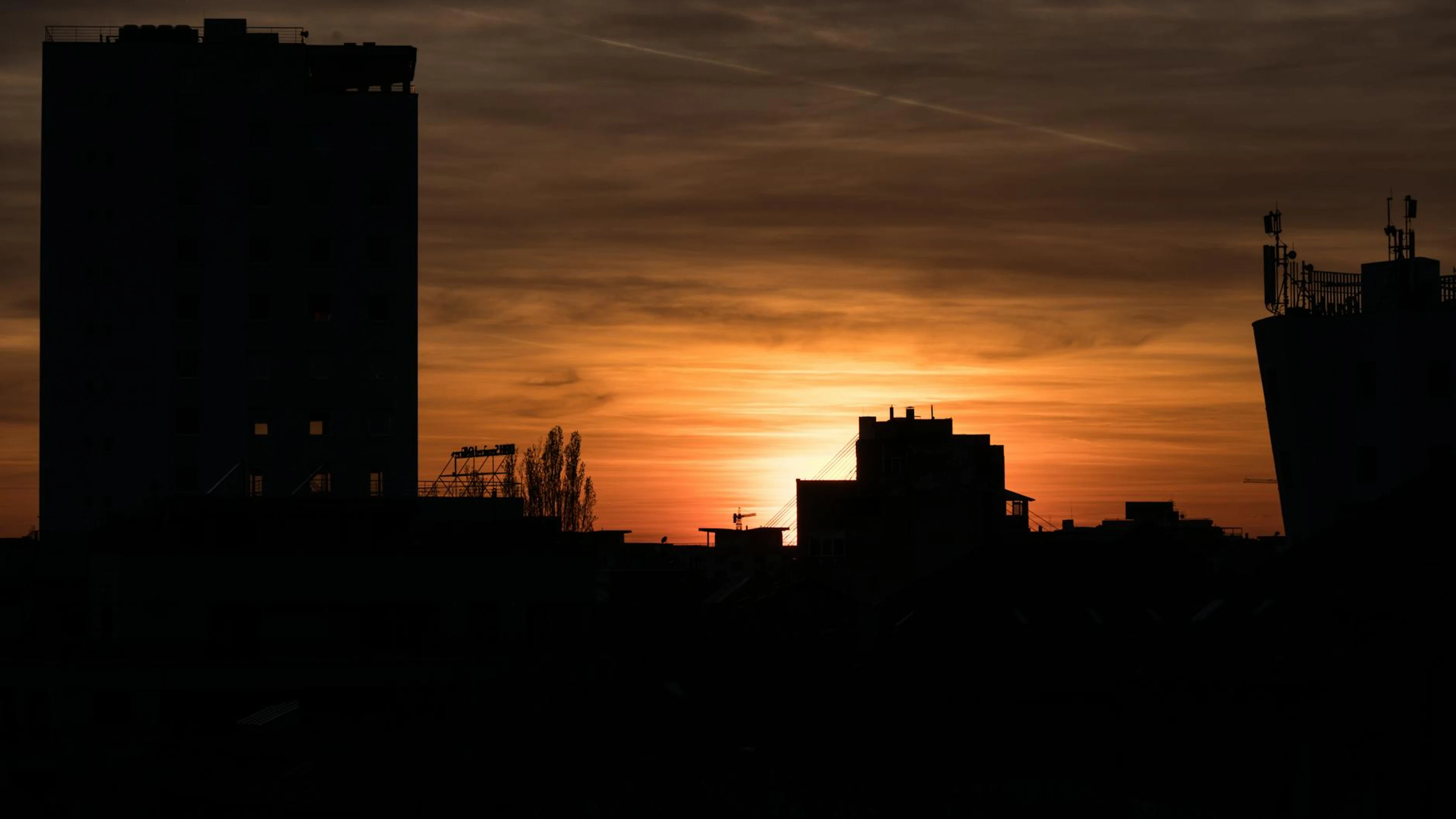 Get this stunning Silhouette of Bucharest cityscape against a vibrant sunset sky, capturing the ur wallpaper in 4K Ultra HD quality. 3840x2160 sunset wallpaper available for free download.