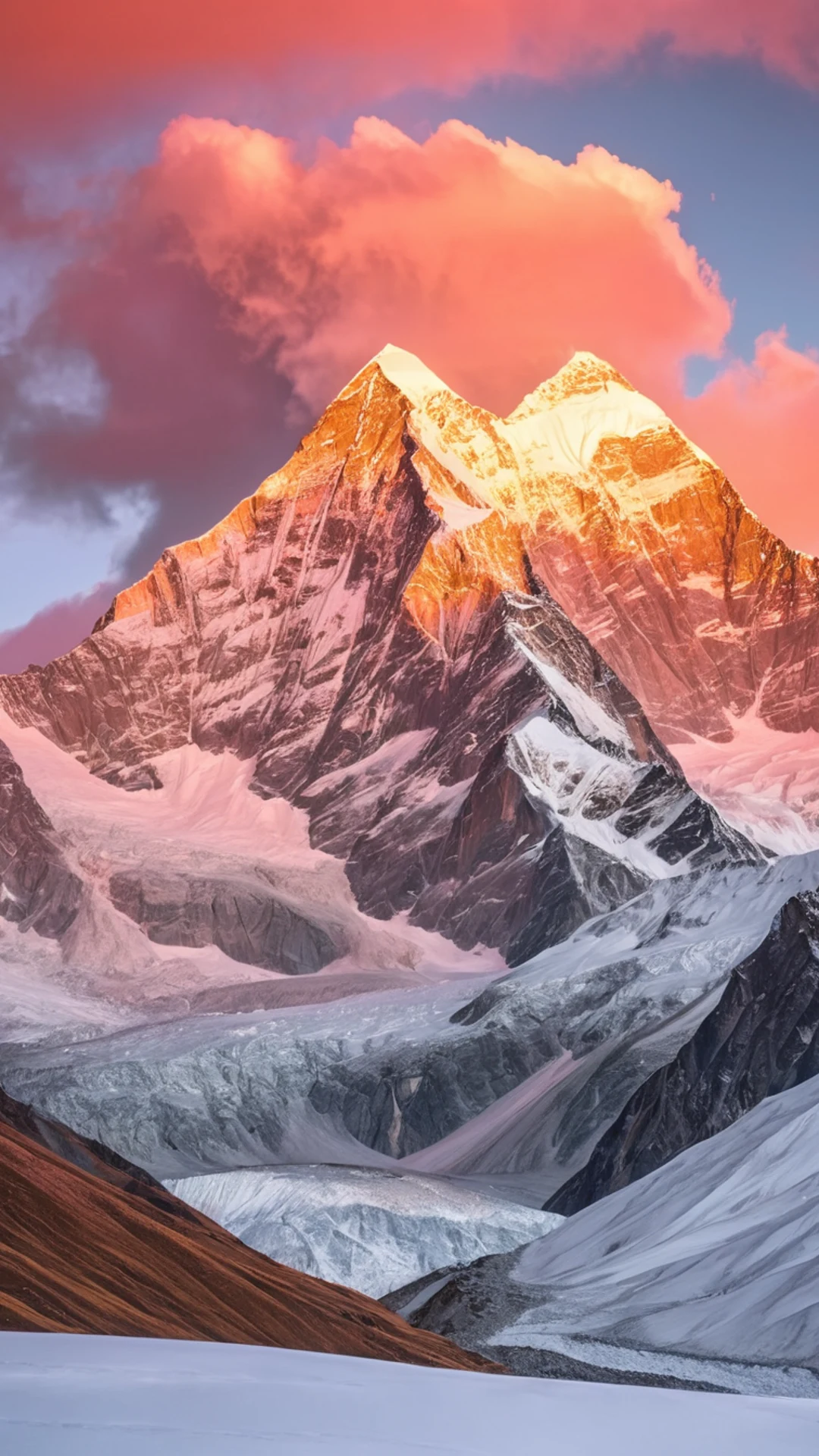 Download Snow Capped Peaks Sunrise wallpaper for free. 1080x1920 phone resolution, perfect for your phone. High quality mountain wallpaper.