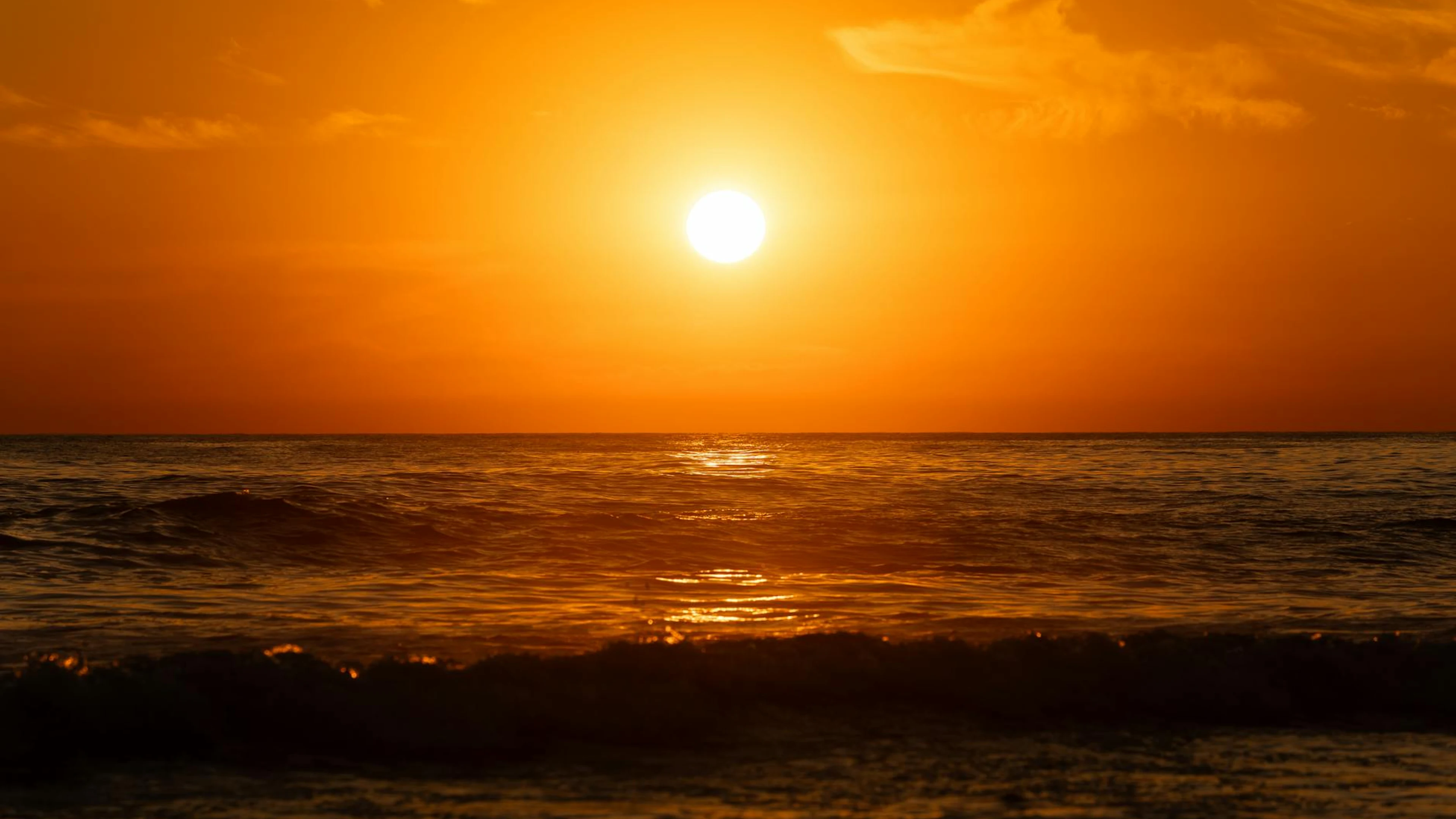 Free Soothing ocean waves at sunset in El Salvador's golden hour. wallpaper in 4K Ultra HD resolution (3840x2160). Beautiful sunset background for your screen. No signup required.