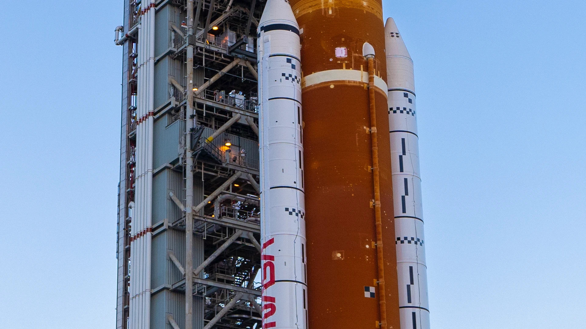 Free Space Launch System (SLS) rocket and Orion Spacecraft rollout at Kennedy Space C wallpaper in tablet resolution (1920x1080). Beautiful space background for your screen. No signup required.