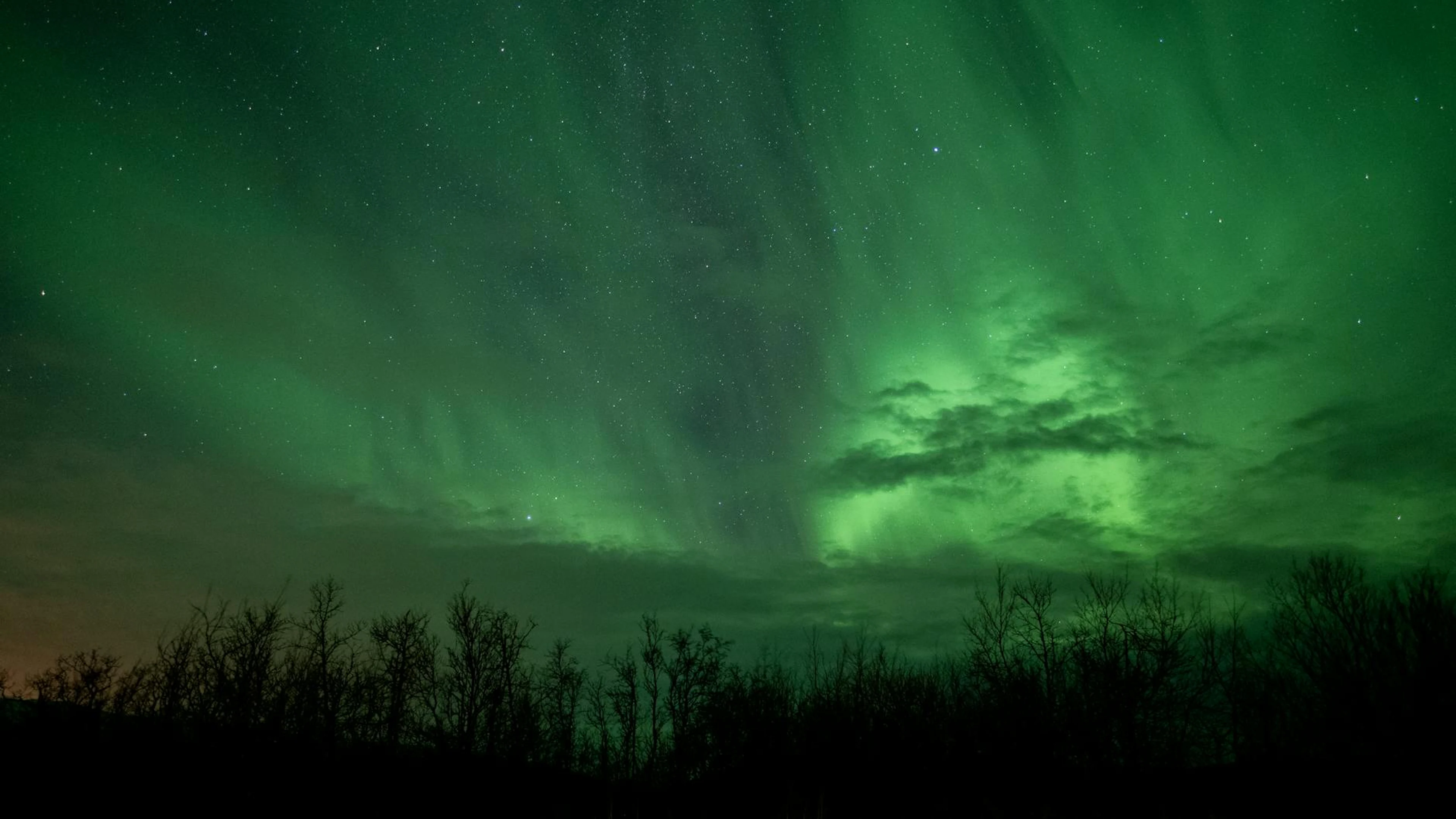 Download Stunning aurora borealis lights up the night sky over Dåfjord, exhibiting a cele wallpaper for free. 3840x2160 4K Ultra HD resolution, perfect for your desktop. High quality aurora wallpaper.