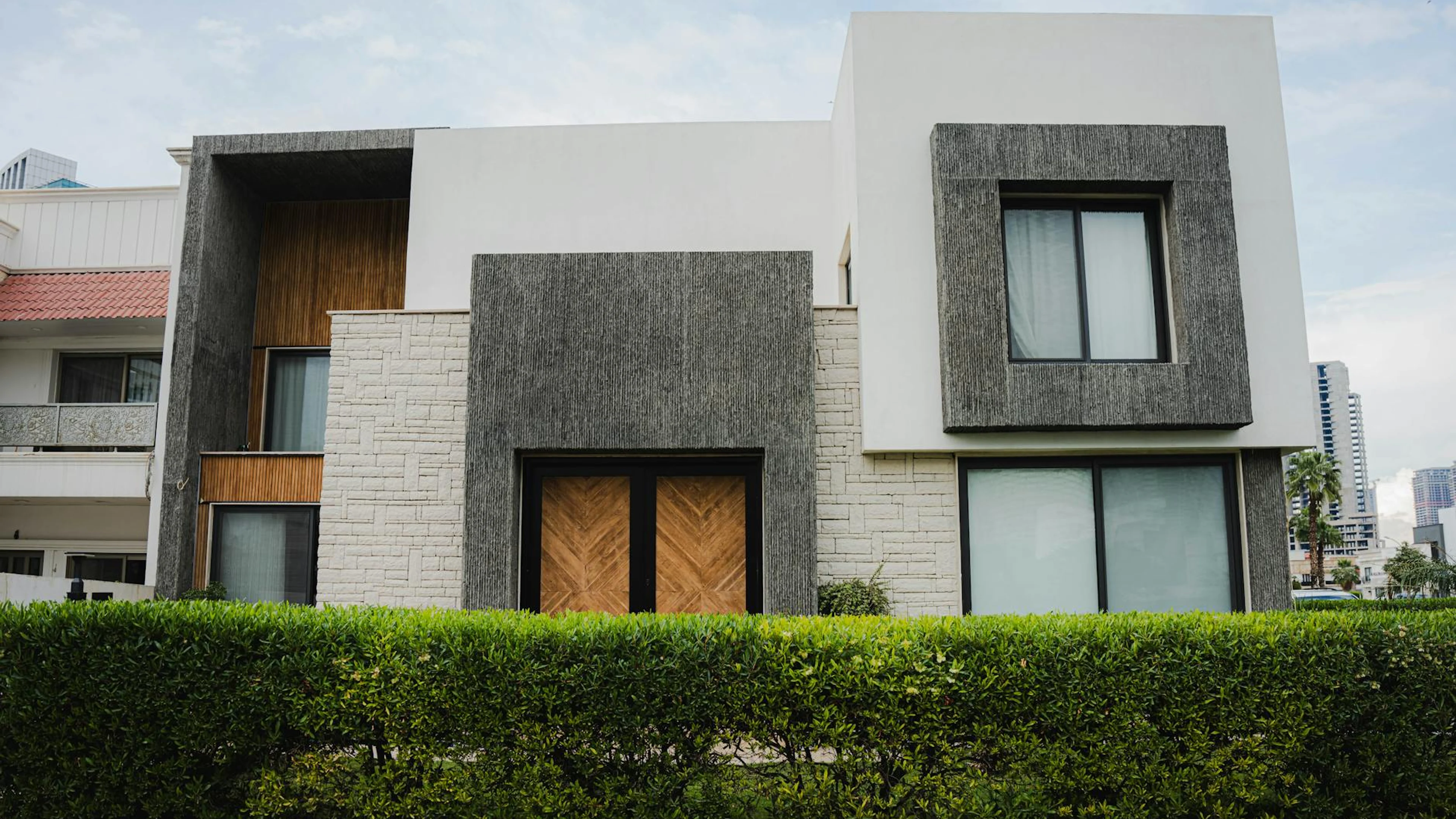 Download Stunning modern house exterior in Erbil, Iraq showcasing minimal design. wallpaper for free. 3840x2160 4K Ultra HD resolution, perfect for your desktop. High quality minimal wallpaper.