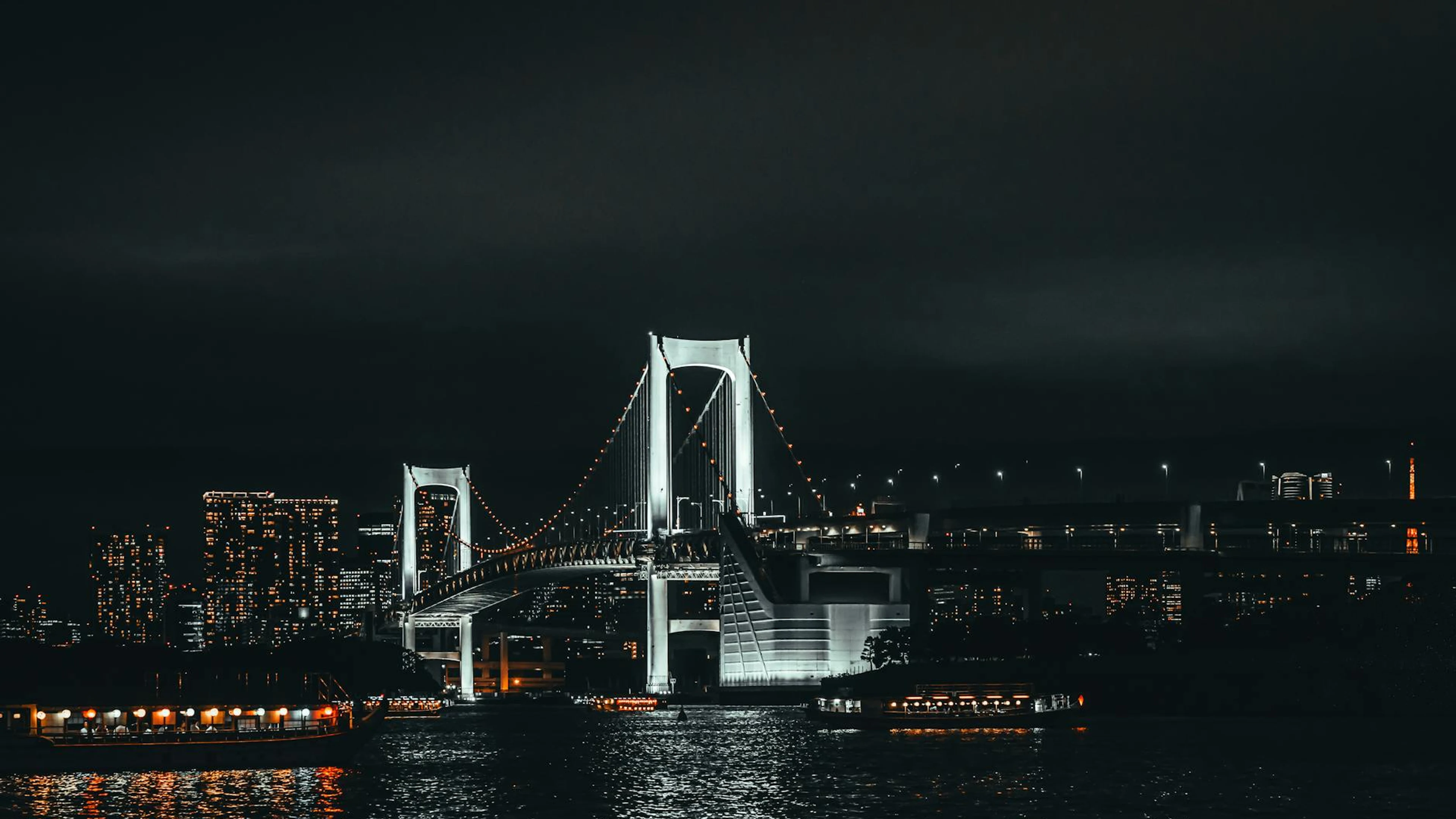 Get this stunning Stunning night view of Rainbow Bridge illuminated over Tokyo Bay in Japan. wallpaper in 4K Ultra HD quality. 3840x2160 city wallpaper available for free download.