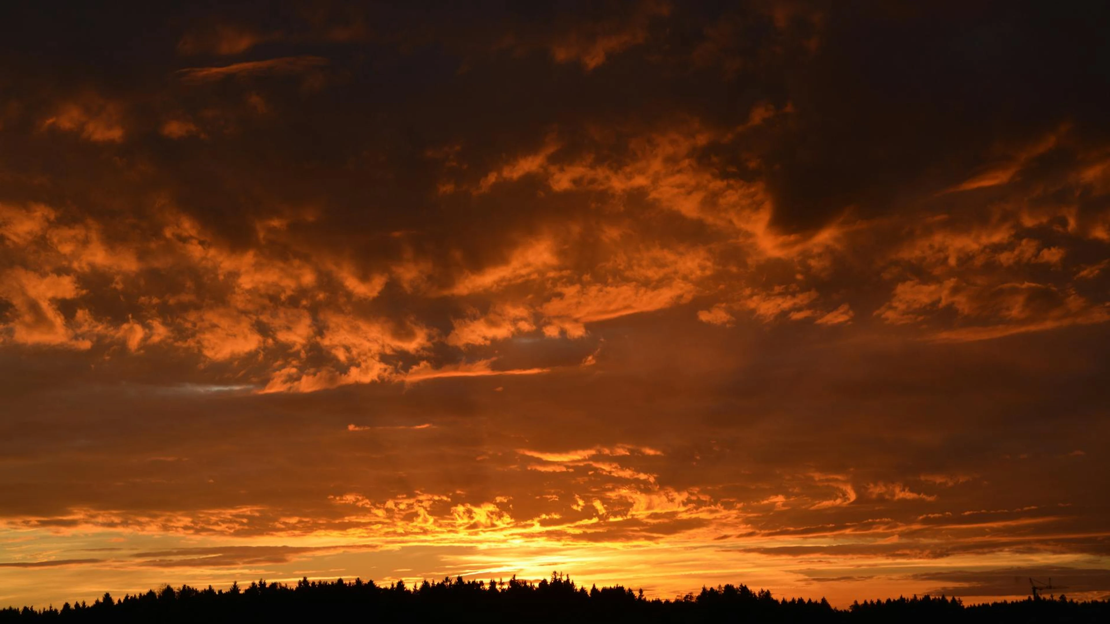Free Stunning sunset casting warm hues over silhouetted trees and vivid sky. wallpaper in 4K Ultra HD resolution (3840x2160). Beautiful sunset background for your screen. No signup required.