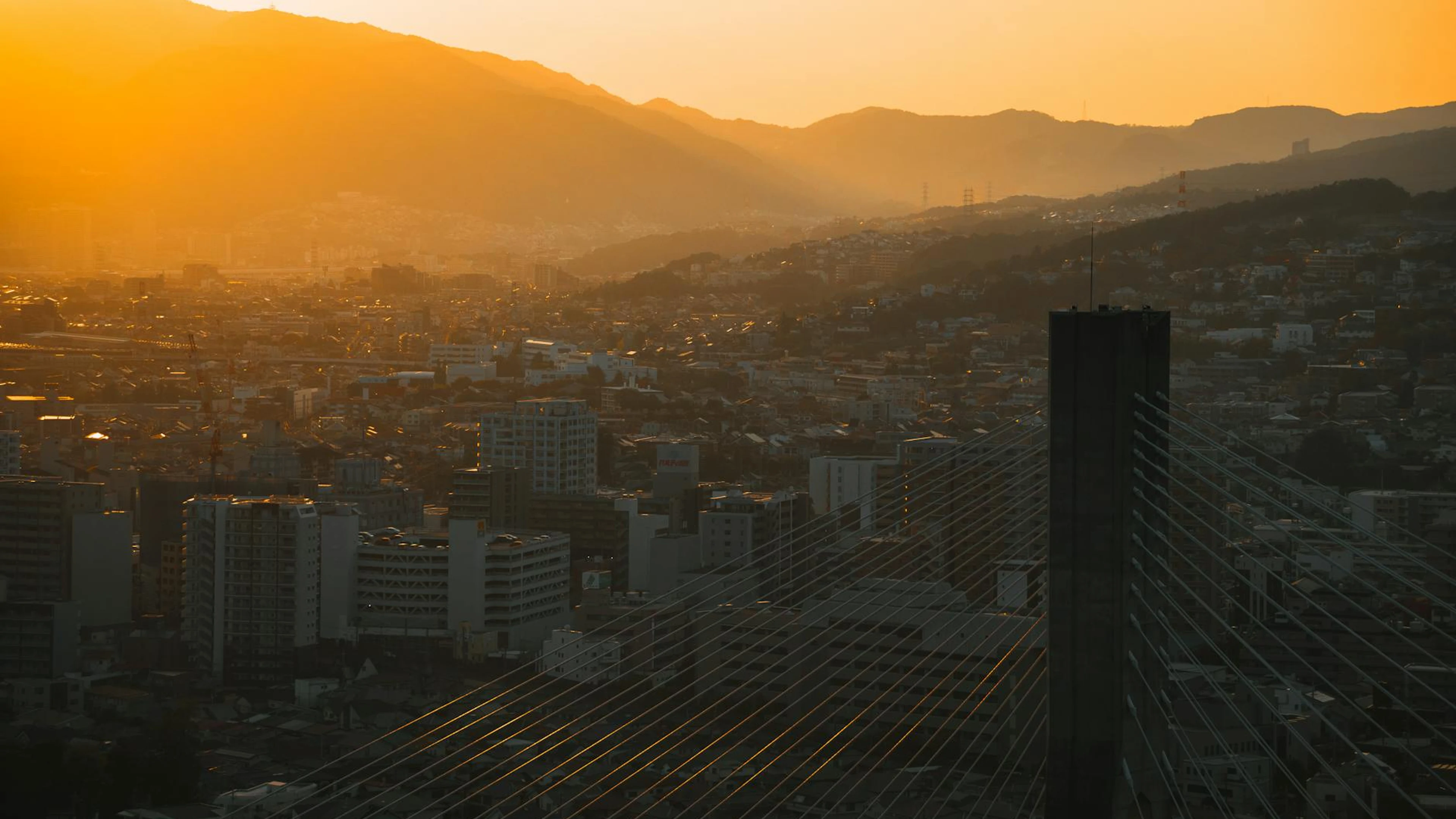 Download Stunning sunset over Ikeda city in Osaka, highlighting cityscape and mountain ba wallpaper for free. 3840x2160 4K Ultra HD resolution, perfect for your desktop. High quality city wallpaper.