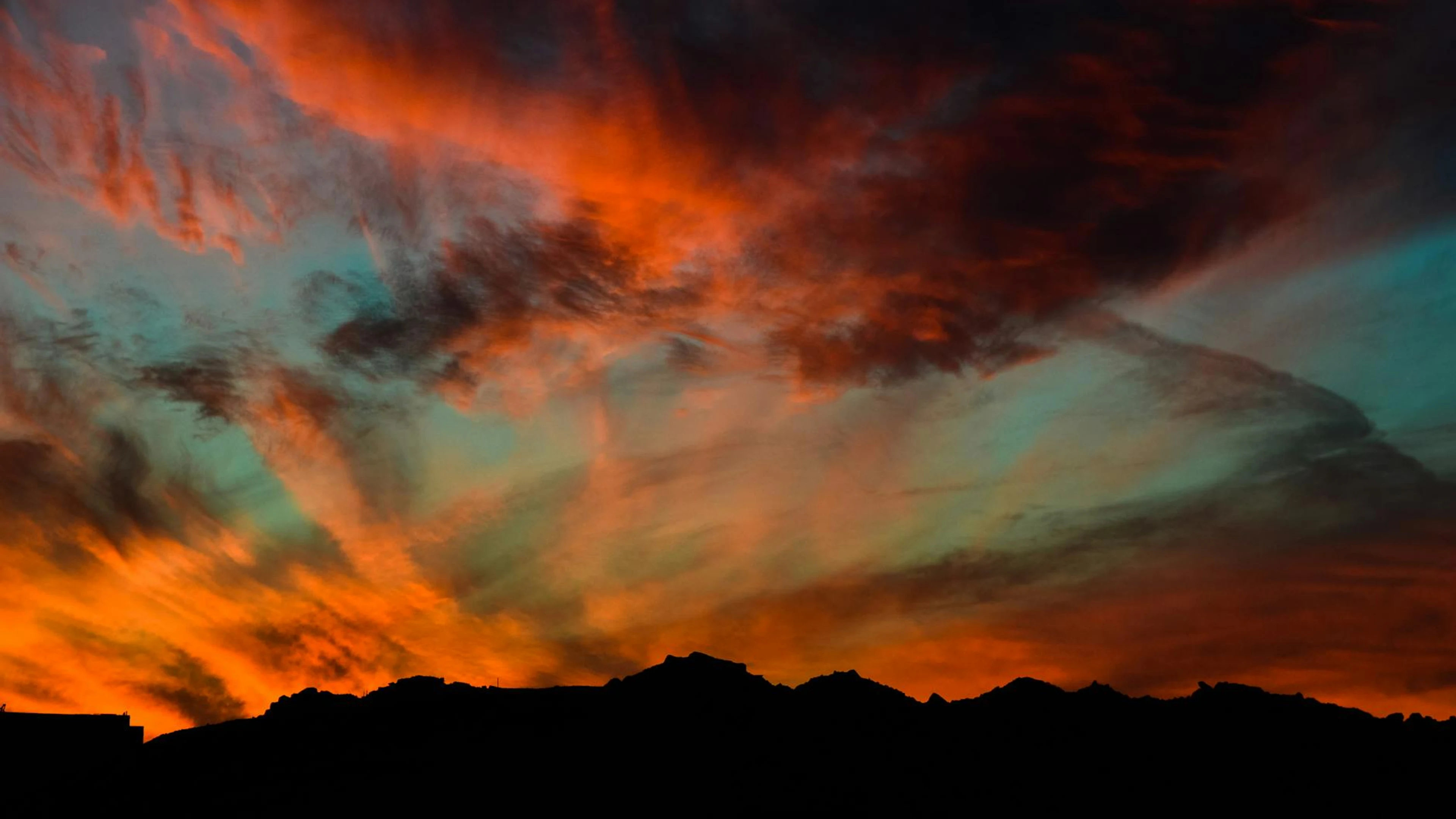 Download Stunning sunset with vibrant orange and blue hues casting silhouettes over mount wallpaper for free. 3840x2160 4K Ultra HD resolution, perfect for your desktop. High quality sunset wallpaper.