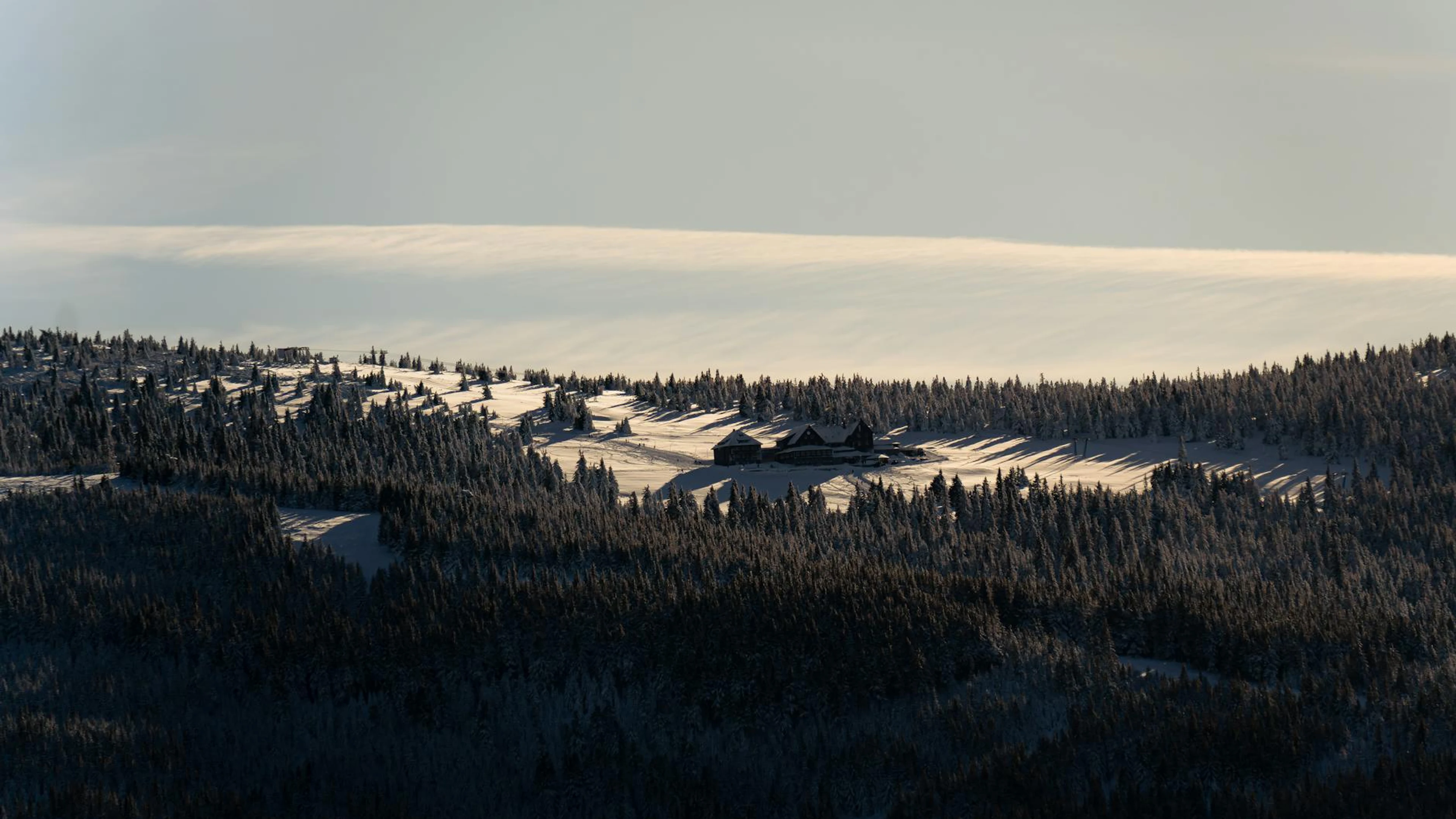 Get this stunning Stunning view of Karkonosze Mountains in winter, beautifully lit at sunrise with wallpaper in 4K Ultra HD quality. 3840x2160 mountain wallpaper available for free download.