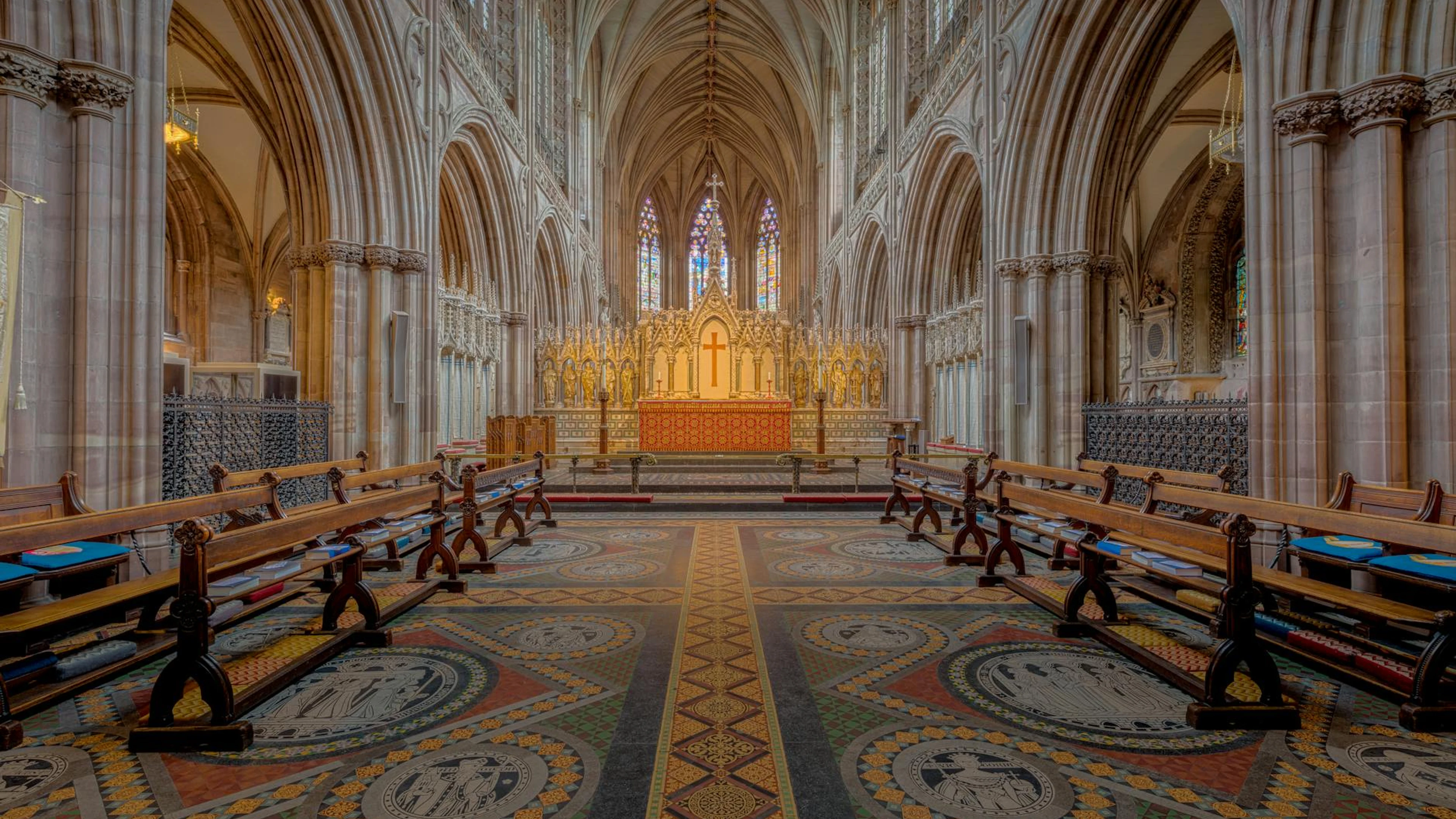 Free Stunning view of the gothic architecture inside Lichfield Cathedral, England. wallpaper in 4K Ultra HD resolution (3840x2160). Beautiful architecture background for your screen. No signup required.