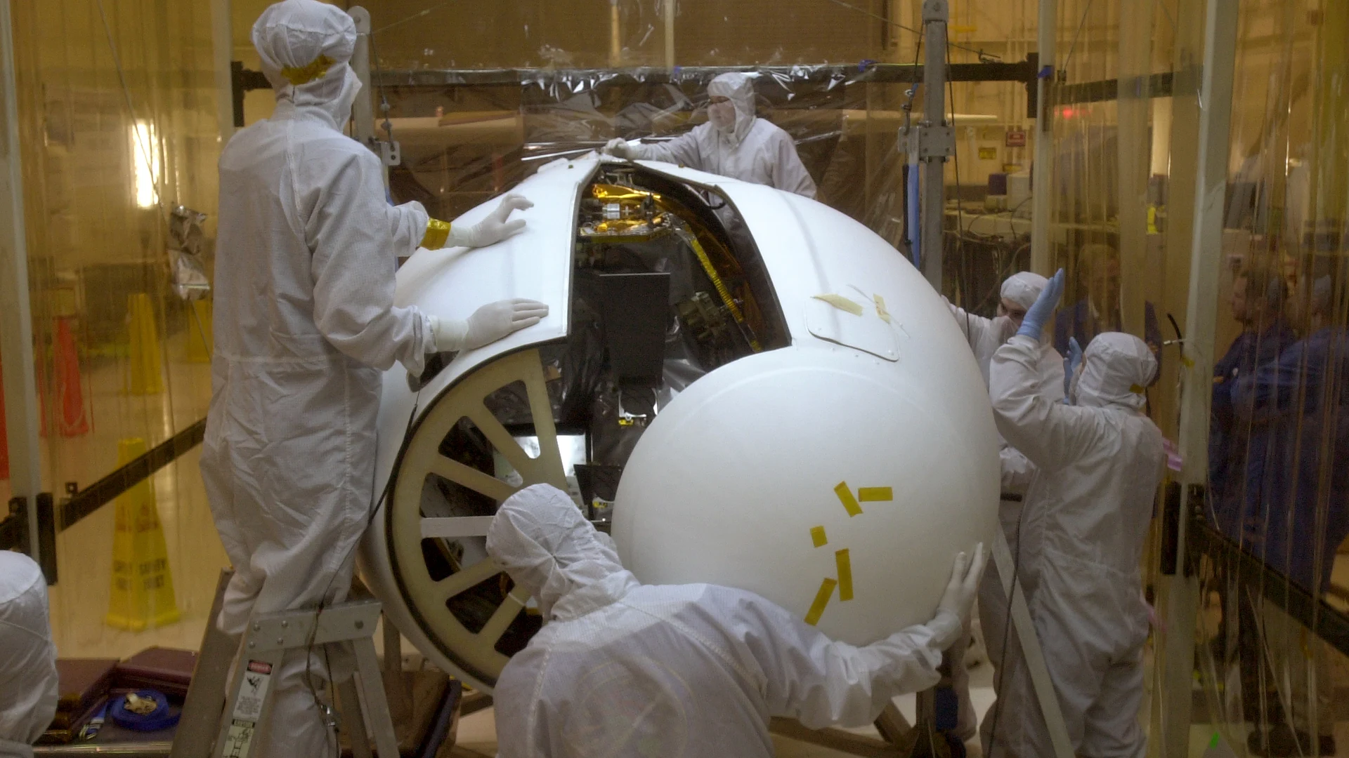 Free Technicians prepare the AIM spacecraft for fairing installation wallpaper in tablet resolution (1920x1080). Beautiful space background for your screen. No signup required.