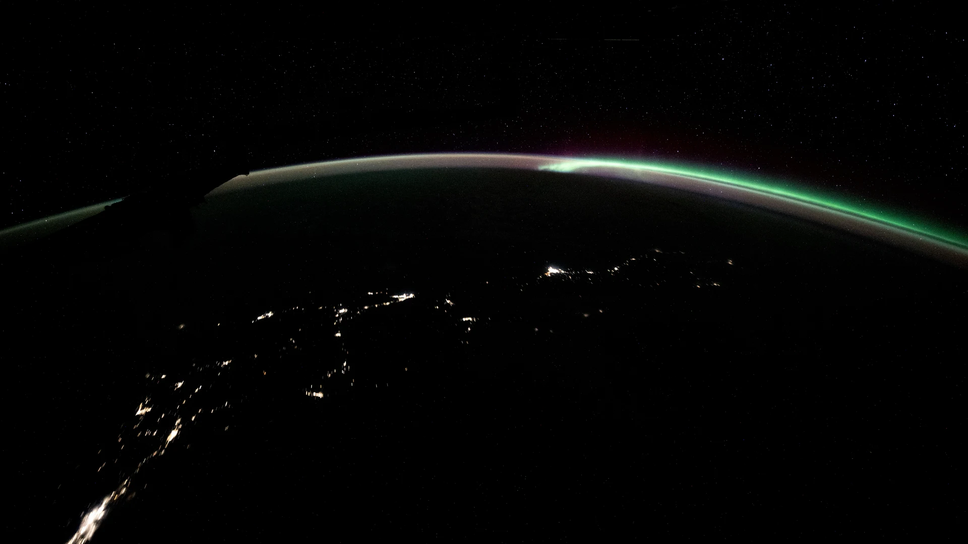Free The aurora australis blends with Earth's atmospheric glow wallpaper in tablet resolution (1920x1080). Beautiful space background for your screen. No signup required.