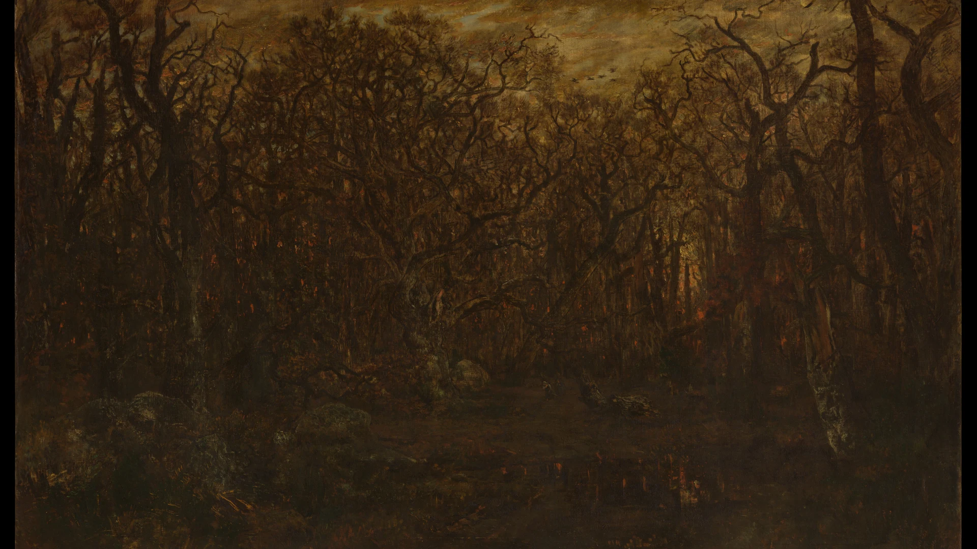 The Forest in Winter at Sunset - free hd dark wallpaper for desktop