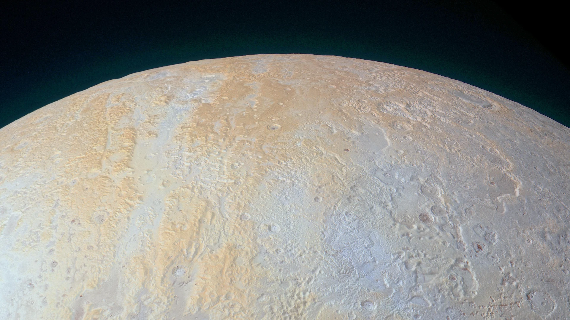Download The Frozen Canyons of Pluto North Pole wallpaper for free. 1920x1080 tablet resolution, perfect for your desktop. High quality space wallpaper.