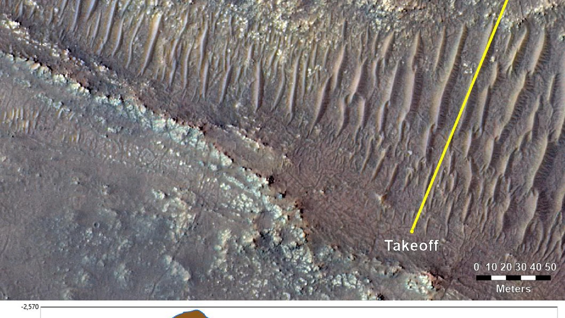 Topography Between Mars Helicopter and Rover for Flight 17