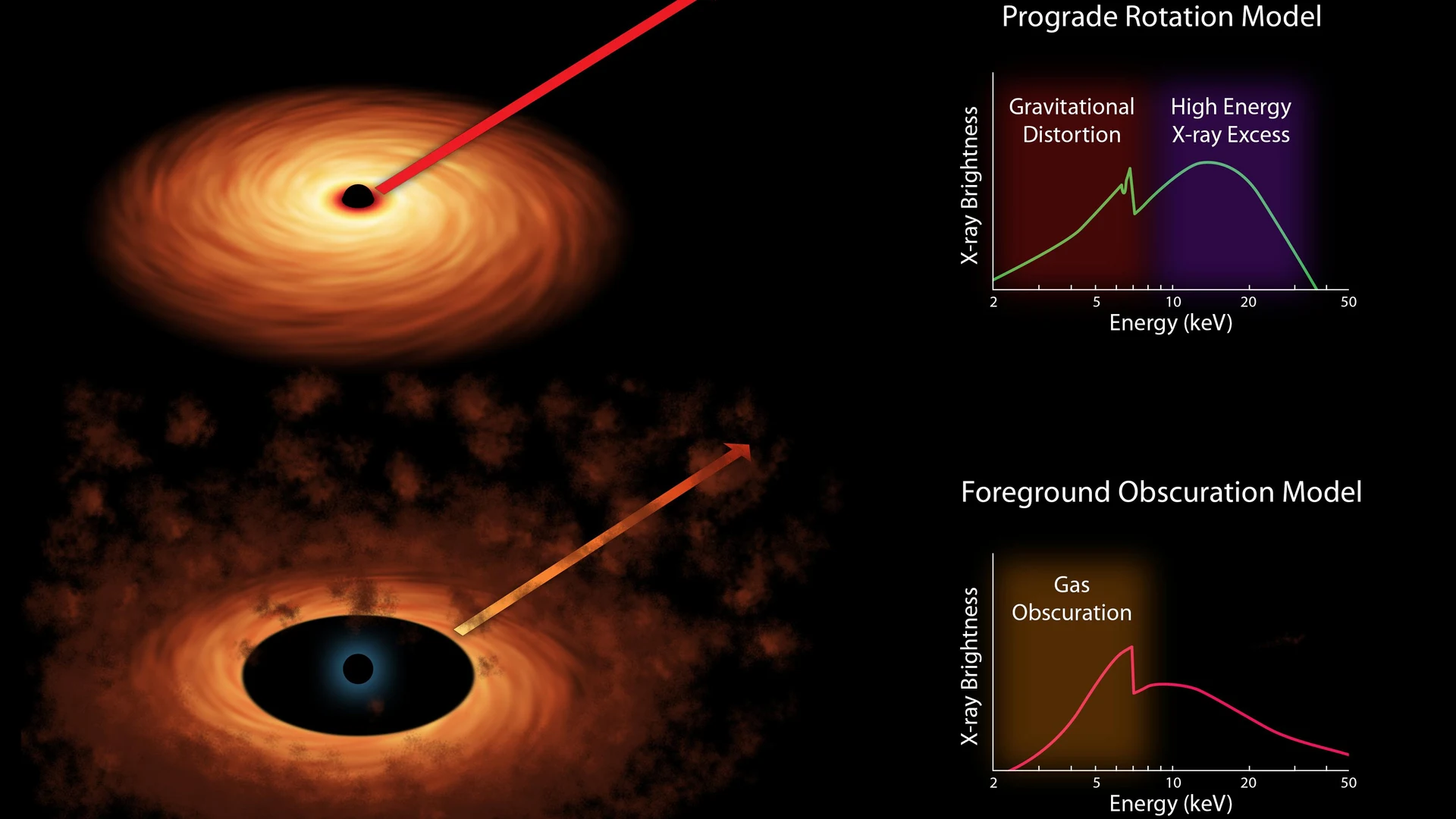 Two Models of Black Hole Spin Artist Concept