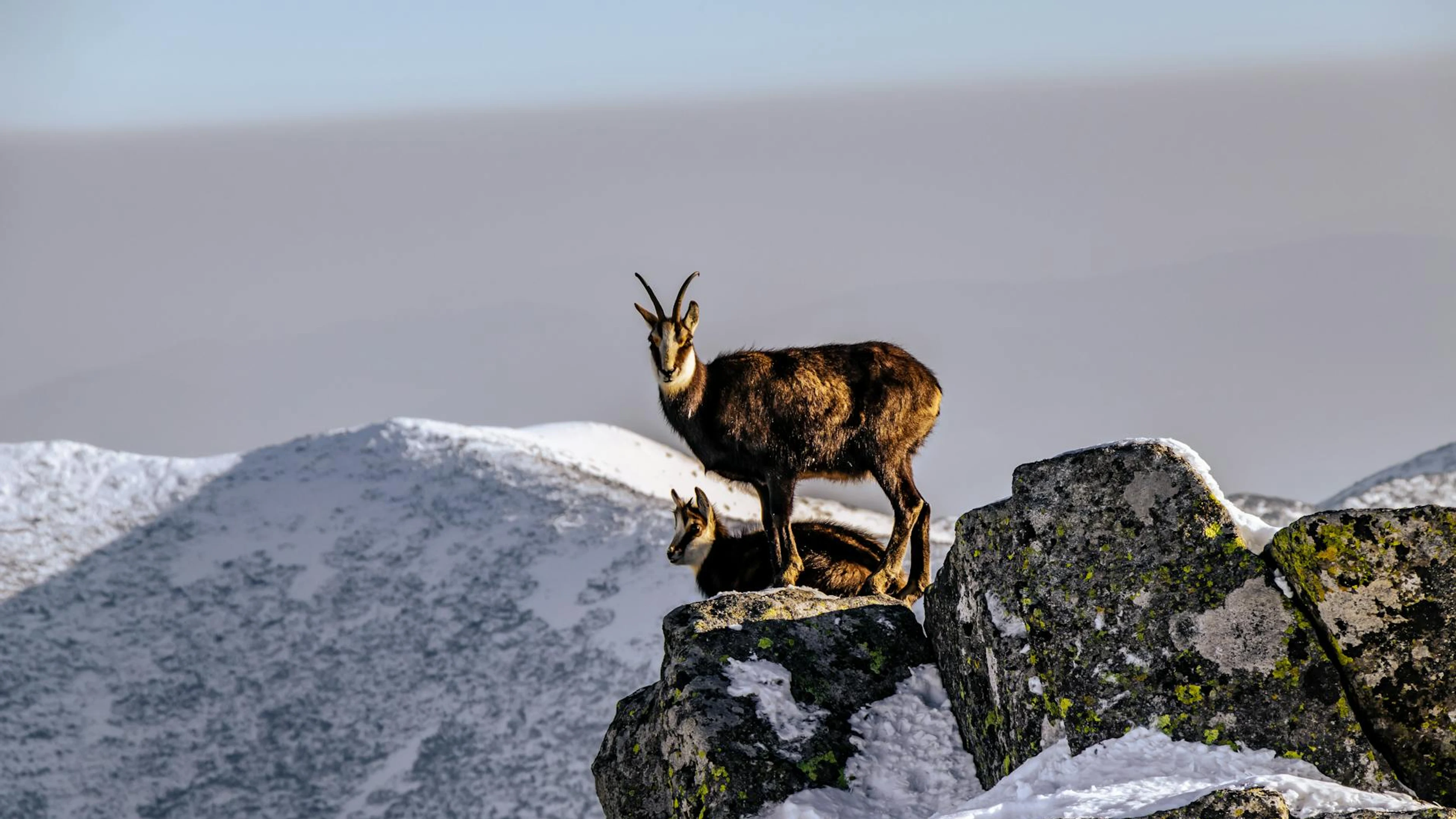 Get this stunning Two mountain goats perched on snowy cliffs with a stunning winter mountain backd wallpaper in 4K Ultra HD quality. 3840x2160 animals wallpaper available for free download.