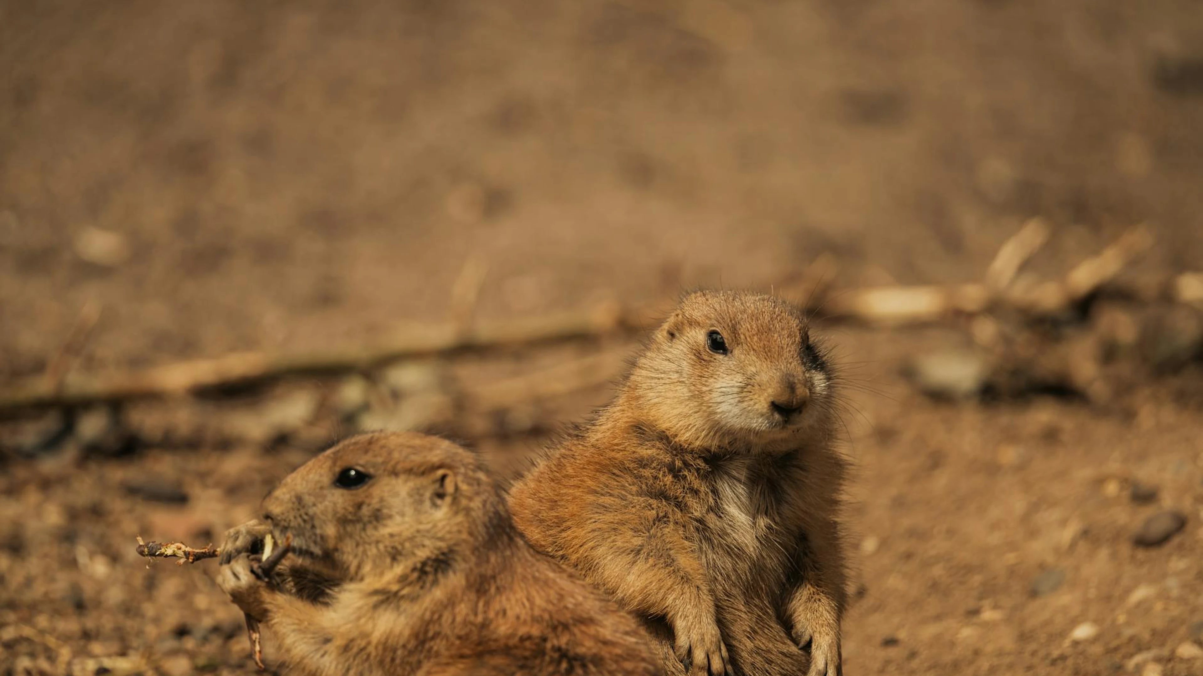 Two prairie dogs interact in their natural habitat, showcasing wildlife behavior - free 4K Ultra HD anime wallpaper for desktop