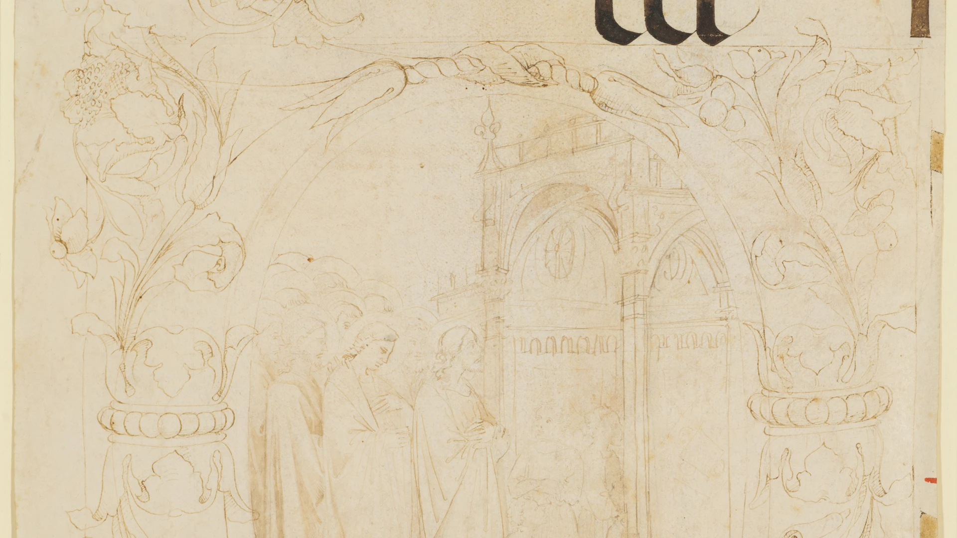 Download Unfinished Design for a Choir Book: Initial with Scene of Christ Entering the Te wallpaper for free. 1920x1080 tablet resolution, perfect for your desktop. High quality dark wallpaper.