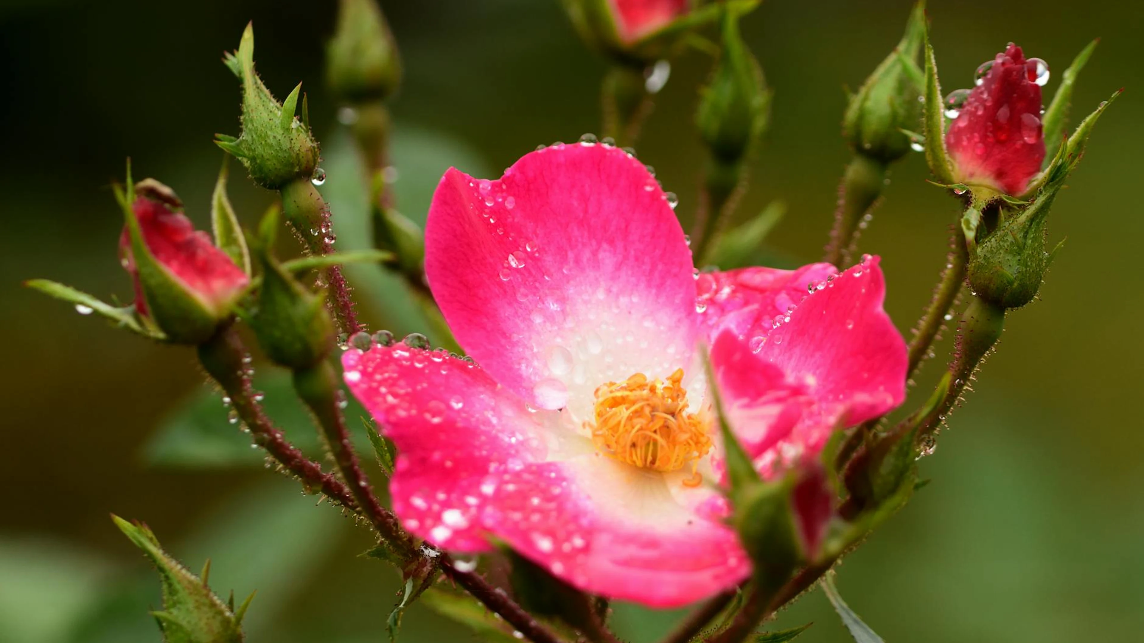 Get this stunning Vibrant pink garden rose with dew drops in lush greenery, ideal for floral theme wallpaper in 4K Ultra HD quality. 3840x2160 flowers wallpaper available for free download.