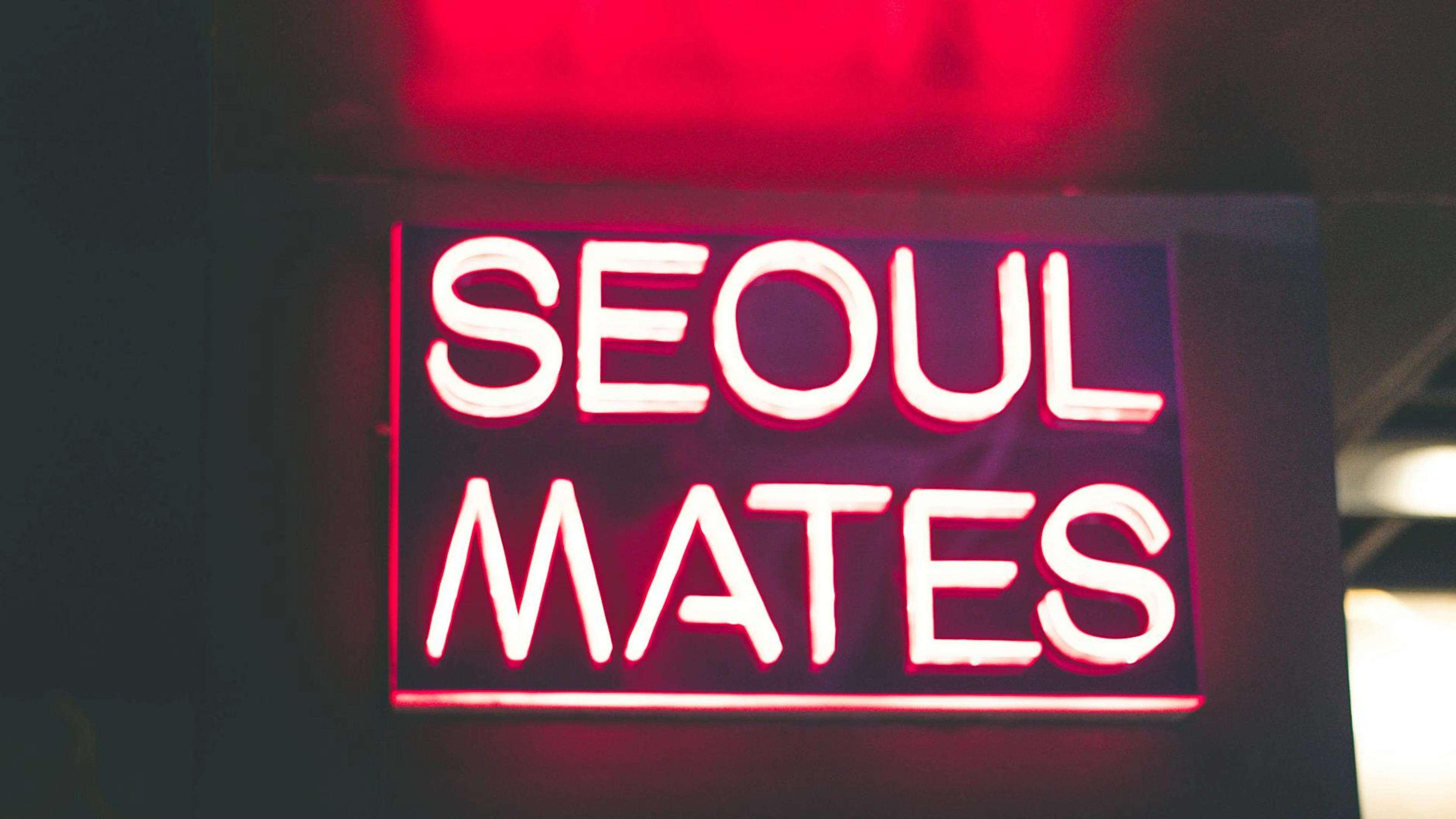 Download Vibrant pink neon sign reading 'Seoul Mates' glowing in the dark. Perfect for ni wallpaper for free. 3840x2160 4K Ultra HD resolution, perfect for your desktop. High quality neon wallpaper.