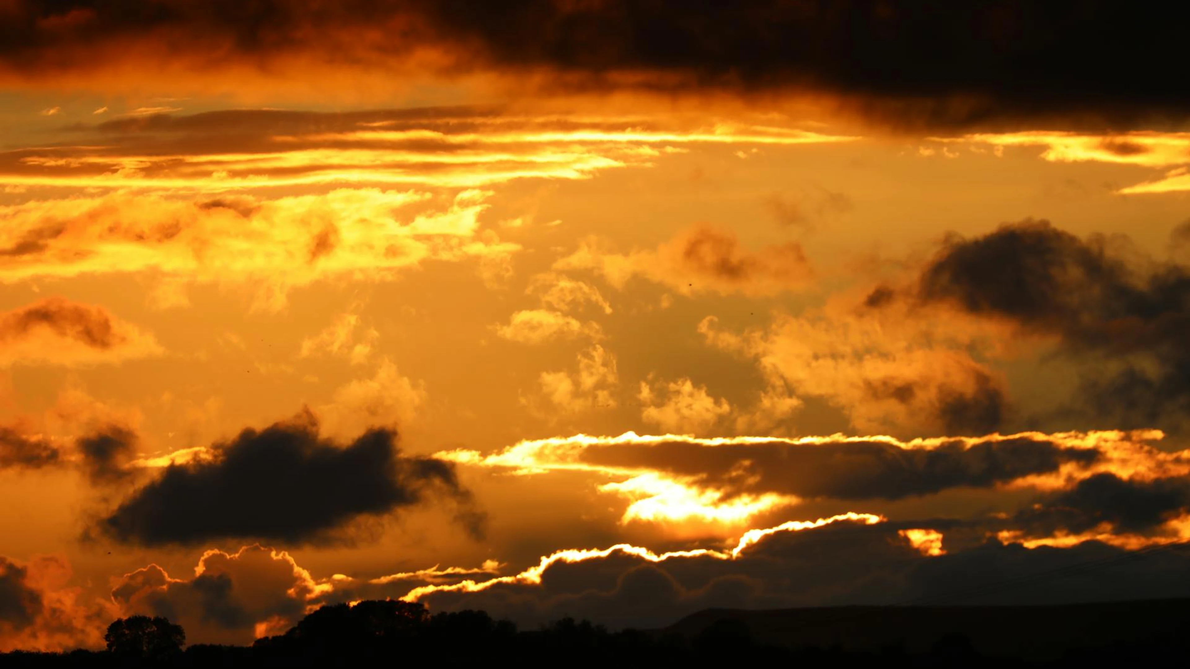 Download Vibrant sunset scene with dramatic cloudscape and silhouetted horizon, creating wallpaper for free. 3840x2160 4K Ultra HD resolution, perfect for your desktop. High quality sunset wallpaper.