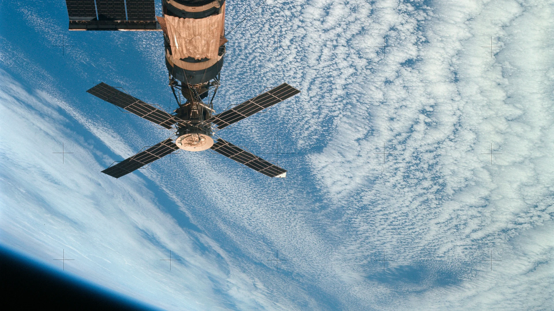 Download View of Skylab space station cluster in Earth orbit from CSM wallpaper for free. 1920x1080 tablet resolution, perfect for your desktop. High quality space wallpaper.