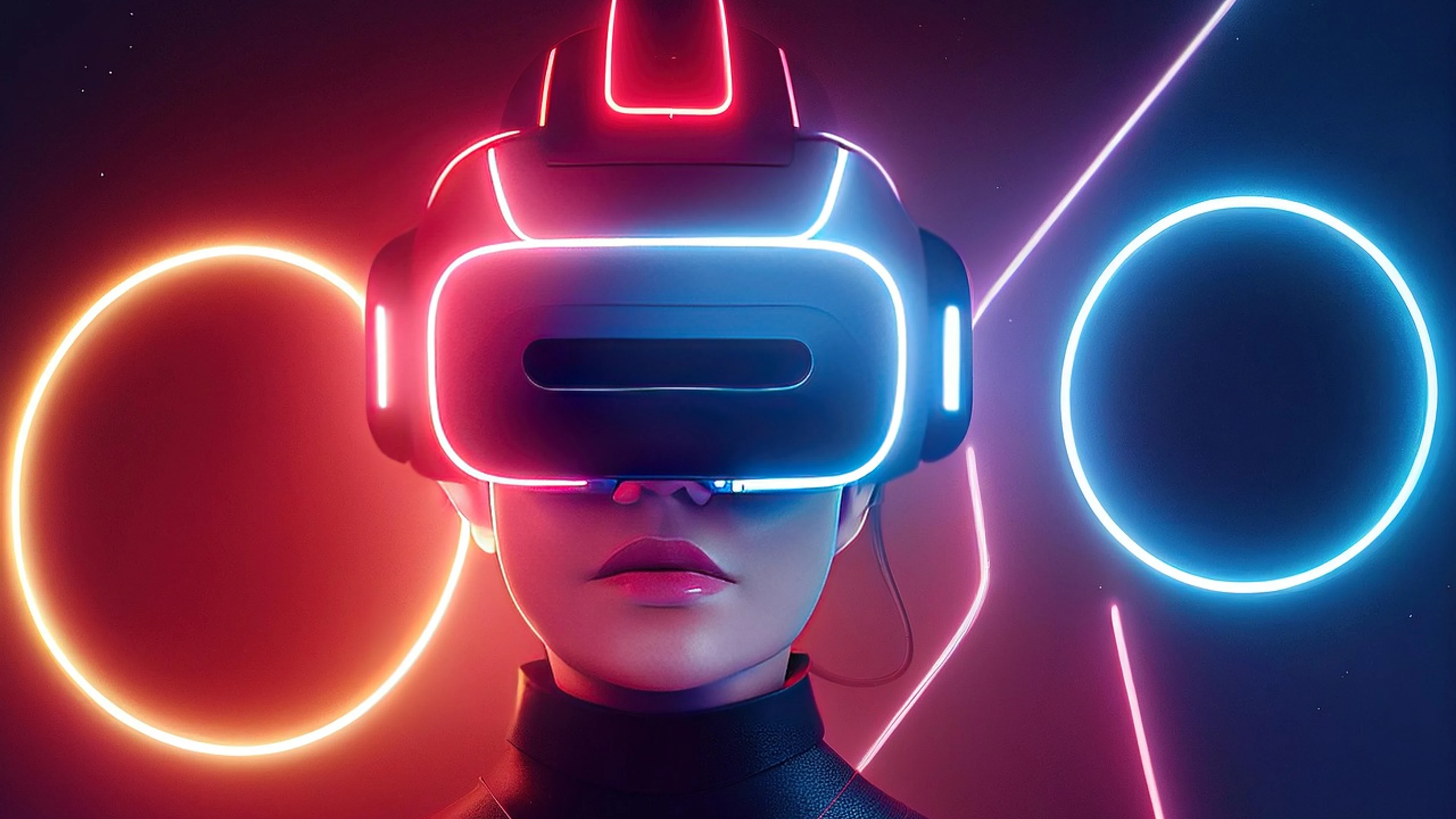 Download Virtual reality caucasian woman wallpaper for free. 3840x2160 4K Ultra HD resolution, perfect for your desktop. High quality neon wallpaper.