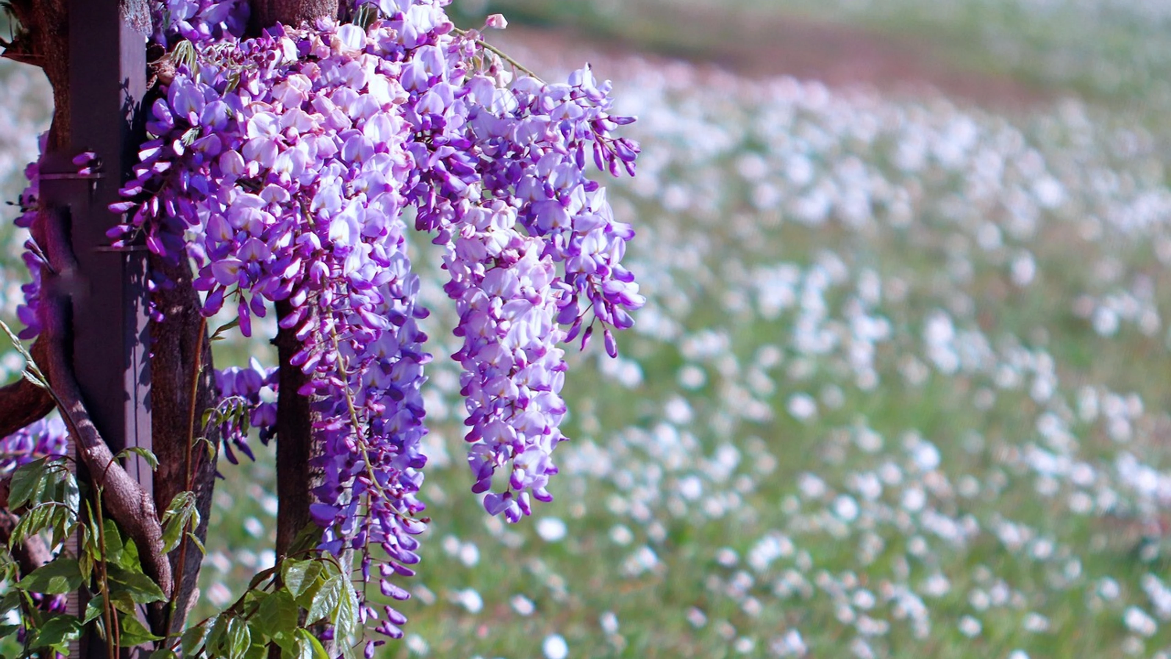 Wisteria purple flowers spring bloom - free 4K Ultra HD aesthetic wallpaper for desktop