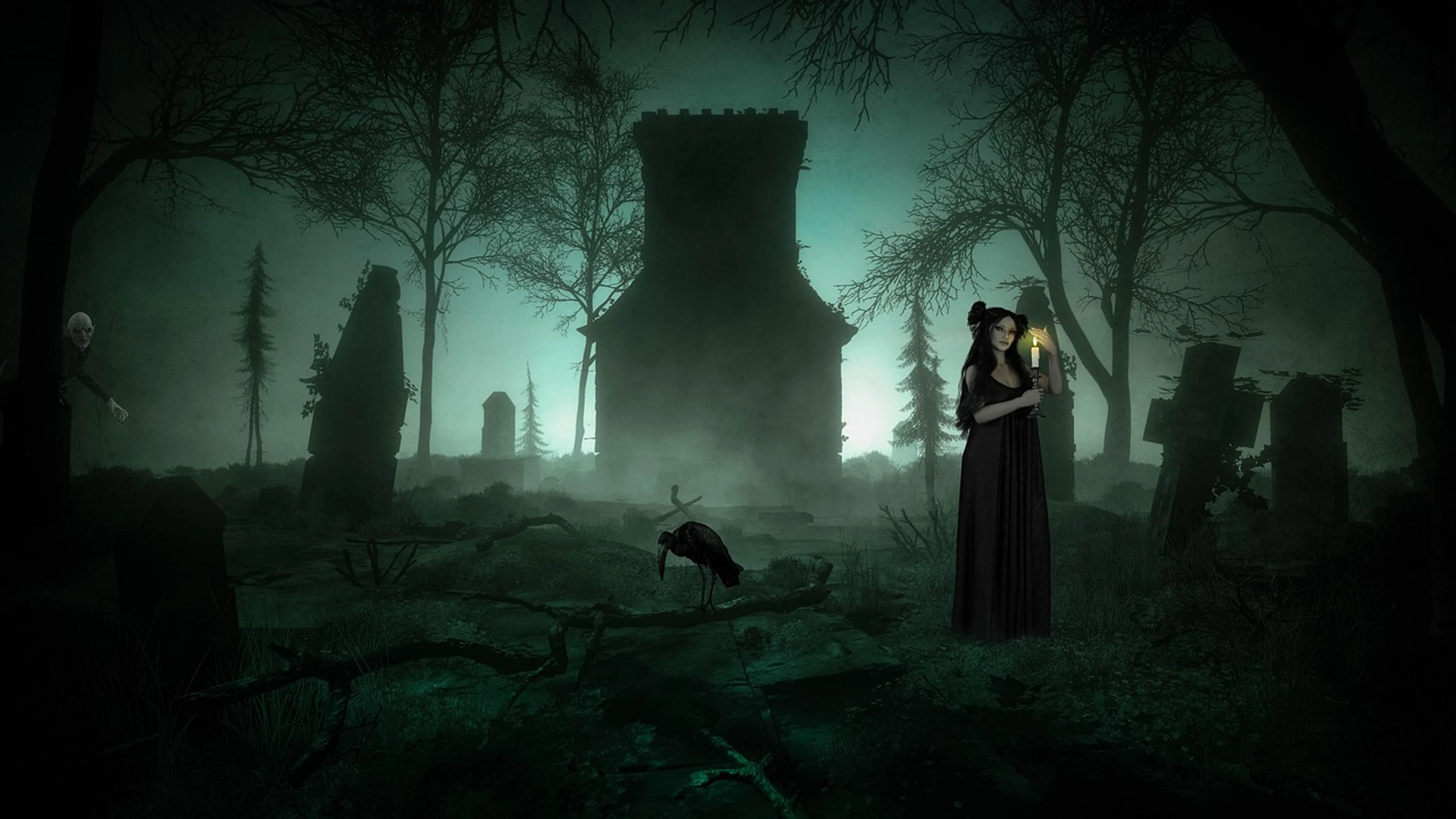 Woman cemetery fantasy - free 4K Ultra HD fantasy wallpaper for desktop