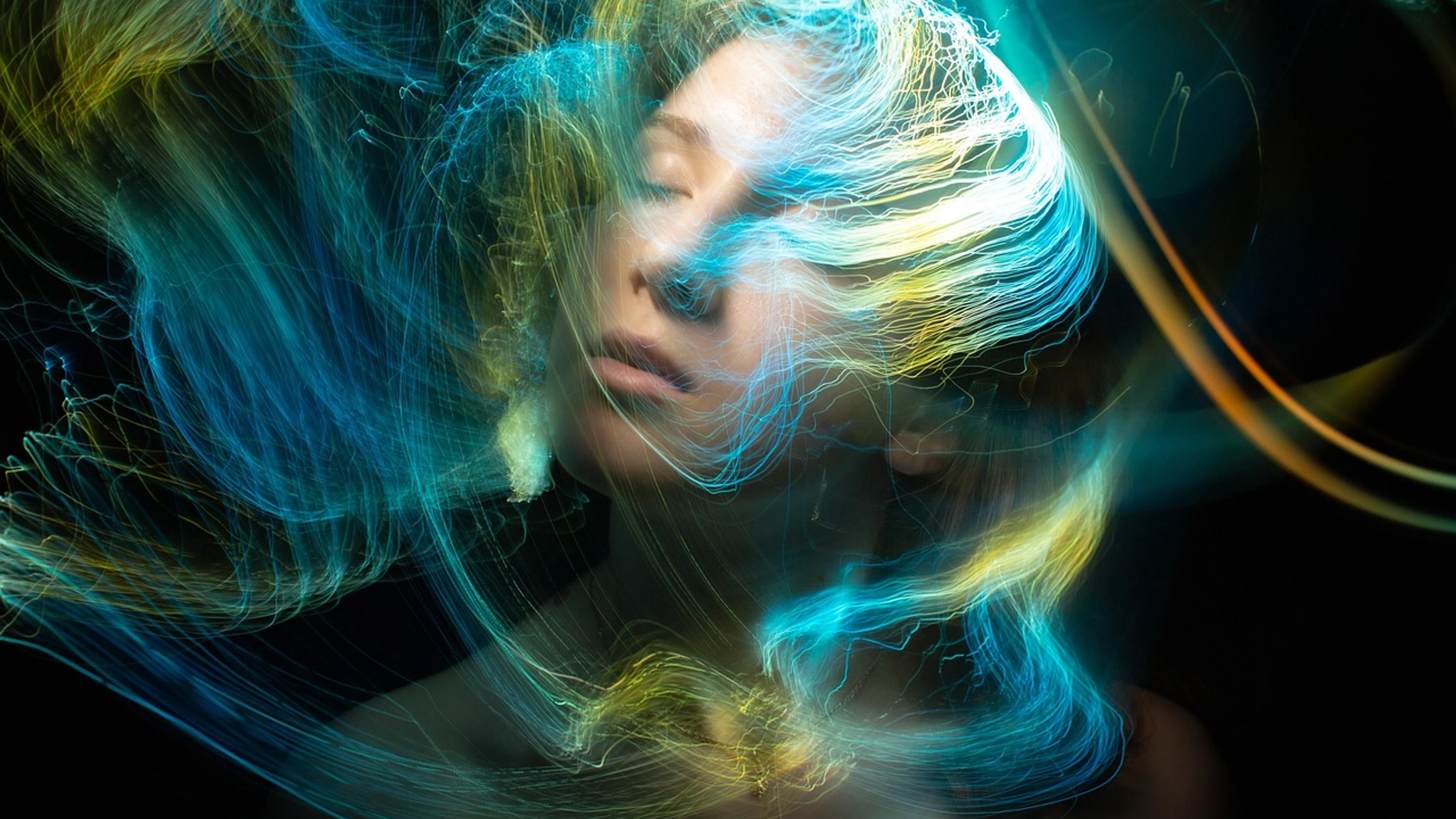 Download Woman face light painting wallpaper for free. 3840x2160 4K Ultra HD resolution, perfect for your desktop. High quality abstract wallpaper.