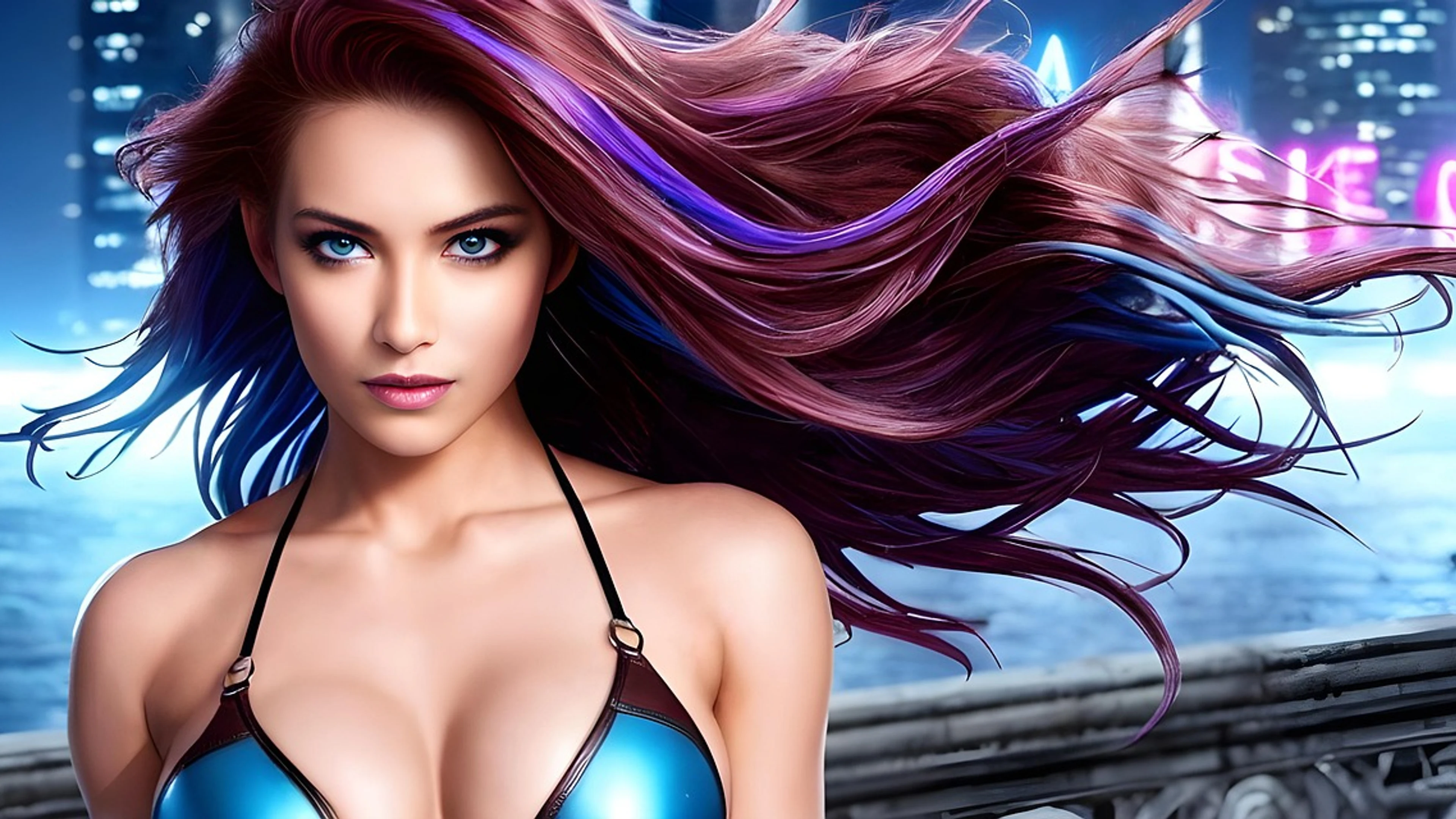 Download Woman neon cyberpunk wallpaper for free. 3840x2160 4K Ultra HD resolution, perfect for your desktop. High quality gaming wallpaper.