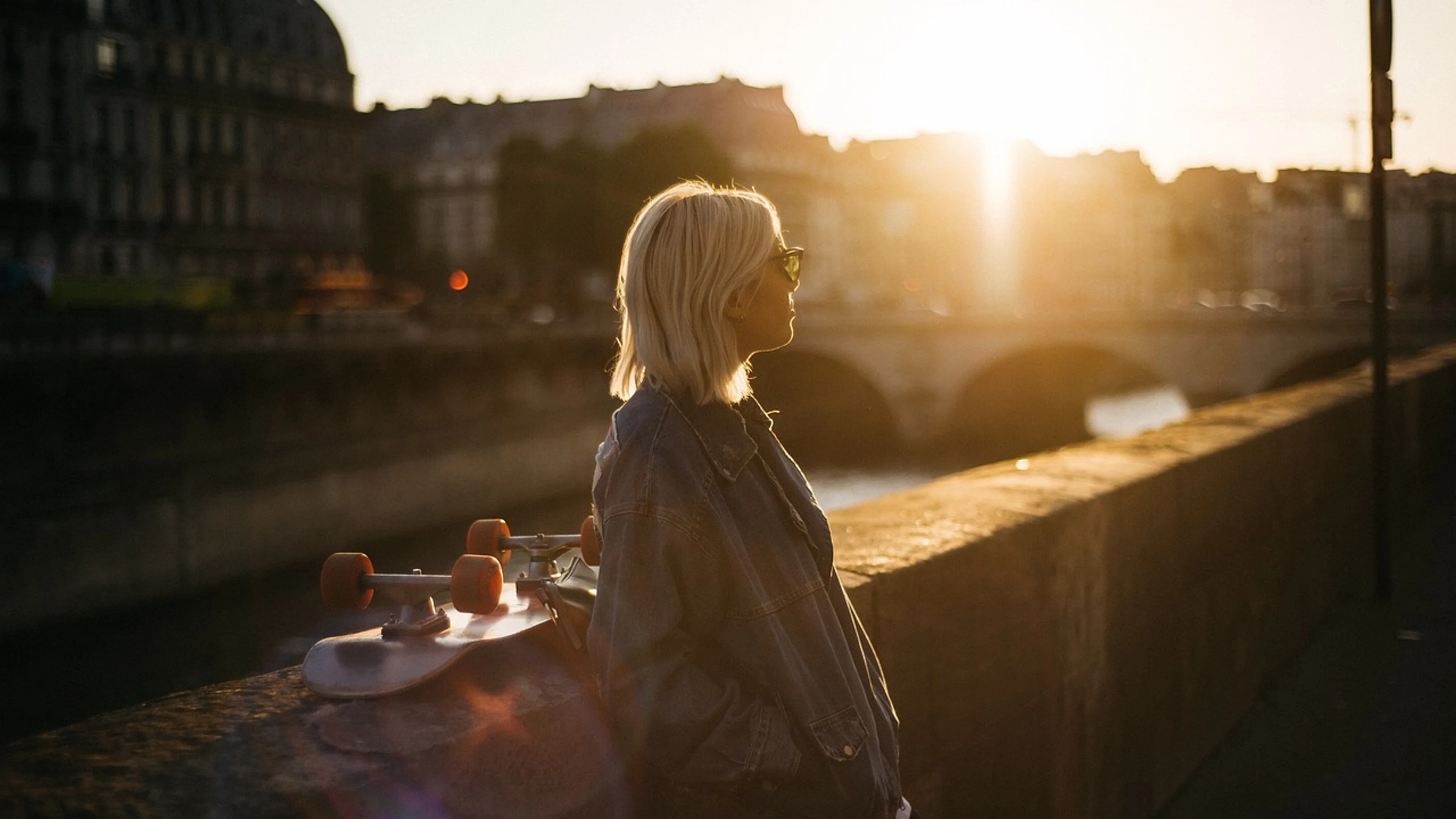 Woman skateboard adventure - free 4K Ultra HD sunset wallpaper for desktop