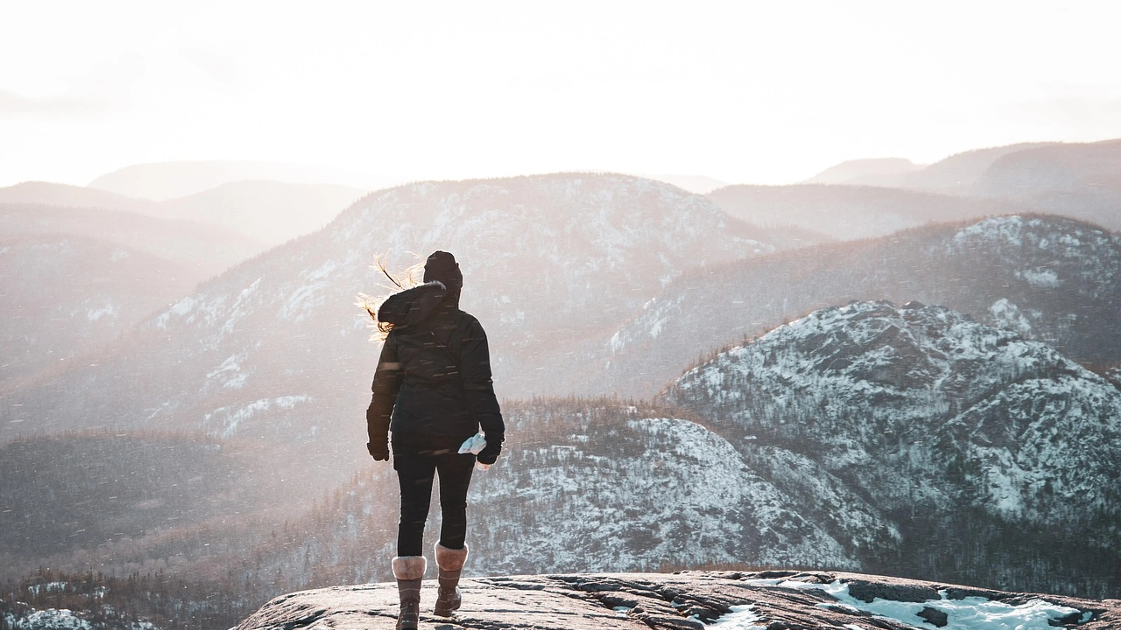 Download Woman snow mountains wallpaper for free. 3840x2160 4K Ultra HD resolution, perfect for your desktop. High quality mountain wallpaper.