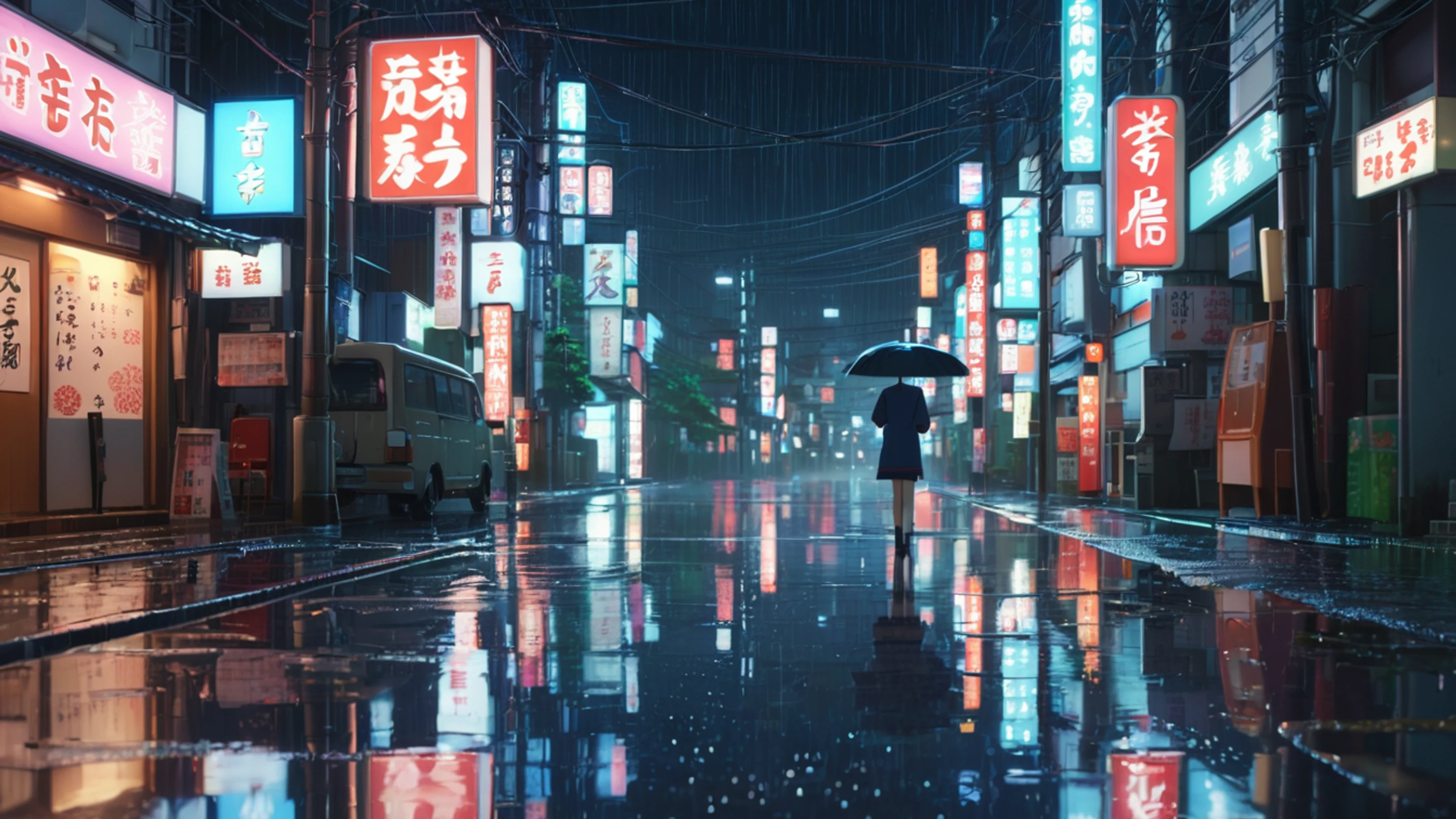 Anime Night Rain Street - free 4K Ultra HD anime wallpaper for desktop